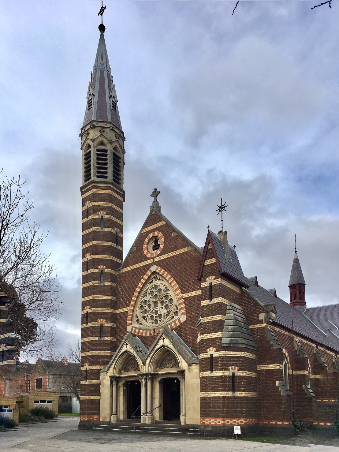 #StGeorgesPresbyterian, Chapel Street #EastStKilda, designed by #AlbertPurchas and built in two stages, nave and tower 1877, transepts and sanctuary 1880. Most interesting thing Purchas did in his long career from the 1850s to the 1890s.