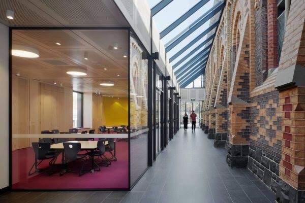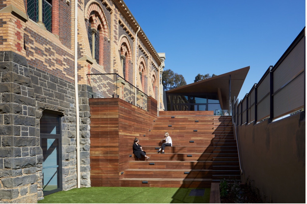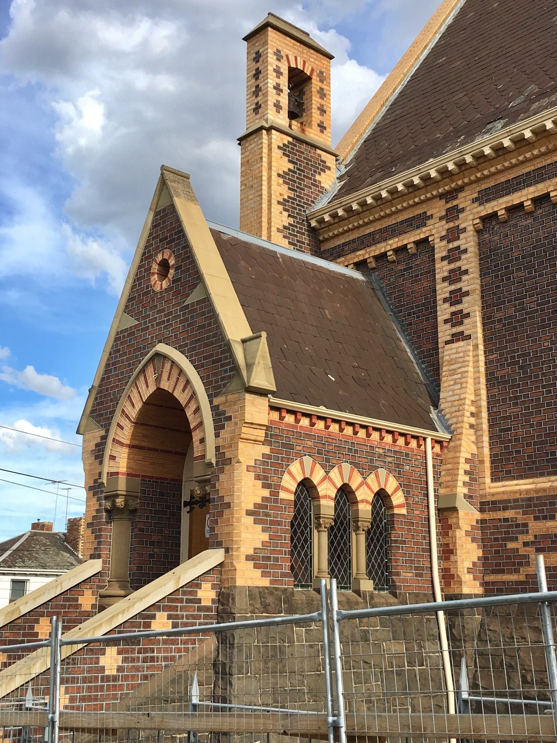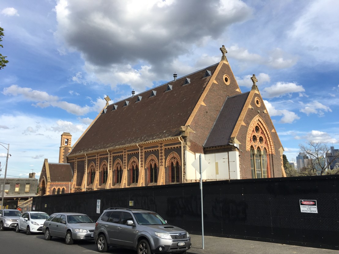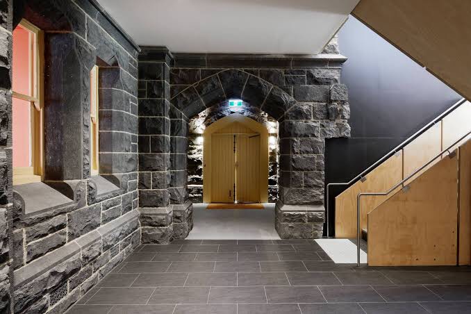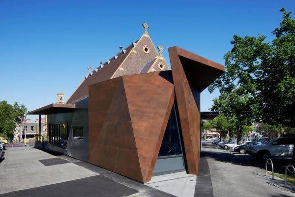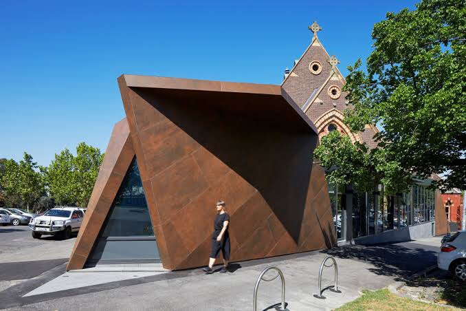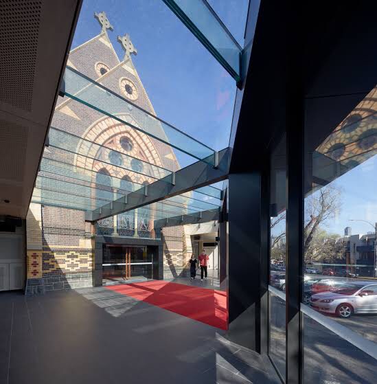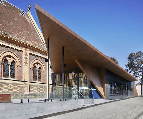 More on #StJudesCarlton – my shots were 2018, when they were working on all this, after a very damaging fire in 2014, completed in 2019 (I guess). They added to the back and underneath and the gap between the church and the hall, creating lots of useable spaces, and in a rather smart move, turned the chairs around inside so you now entry from the rear, which is street level rather than up some steep stairs. The work is by @armarchitecture; this is the church of one of the principals, #HowardRaggatt. The spiky entry thing is a reference to Vault, the yellow sculpture now next to ACCA, but originally in the city square. All photos from them or @primetileandstone, I havnt actually gone back yet, but I think it’s fine, thorough maybe I would have used some brick and less glass.