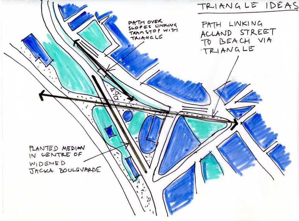 Plans for the #StKildaTriangle are in the news today so here’s my (terrible) sketches I did for the #communityconsultation in 2012.