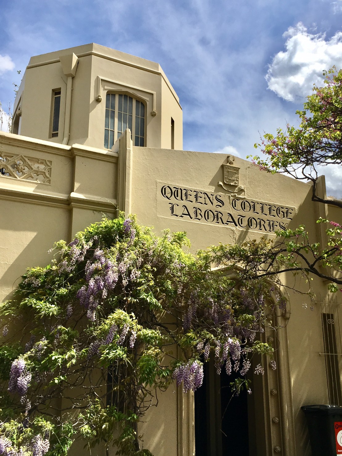 Behind the main building at #QueensCollegeMelbourne is this curious thing, a #laboratories building, built in 1930 in a sort of Deco-Tudor style, with an octagonal lantern, like a mini-cathedral ! Great #typeface, I suppose #GothicScript. Paid for by the great 30s philanthropists the Nicholas brothers, of Aspro wealth, also practicing Methodists, hence this structure, rebuilding at Wesley College and a hall at the Wesley Church downtown (and Alfred Nicholas’ fab house in the hills #BurnhamBeeches). This was probably designed by #HarryNorris, who designed all those other things.