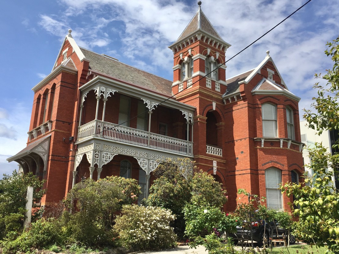 One of two big mansions on Church Street on top of the small hill east of the #MiddleBrighton railway station. Another towered mansion, in #redbrick #Italianate form, but with hints of #gothicrevival in the window arches, and the prominent #gable ends. All details painted white, just as they have been probably since the 1950s. Original post October 2017. Update Oct 2018: white and light grey now.