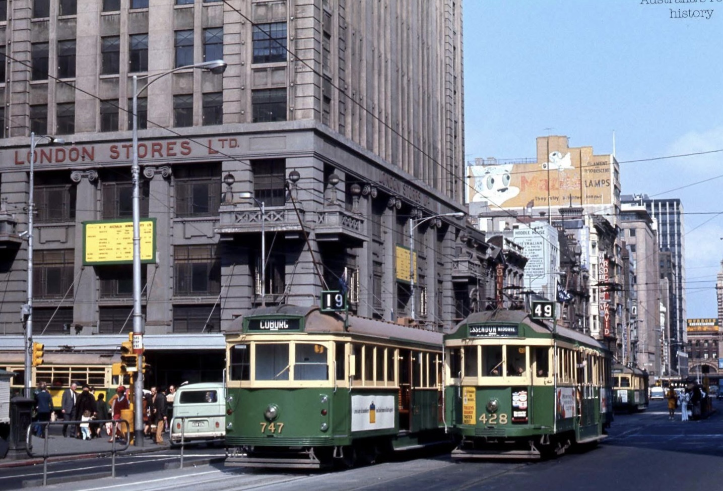 Behind the facades it’s actually U shaped, 3rd pic is from Myers. The Big Green Building as someone said on the tram the other day. Been green as long as I can remember- just found image from 1973, yep green.
