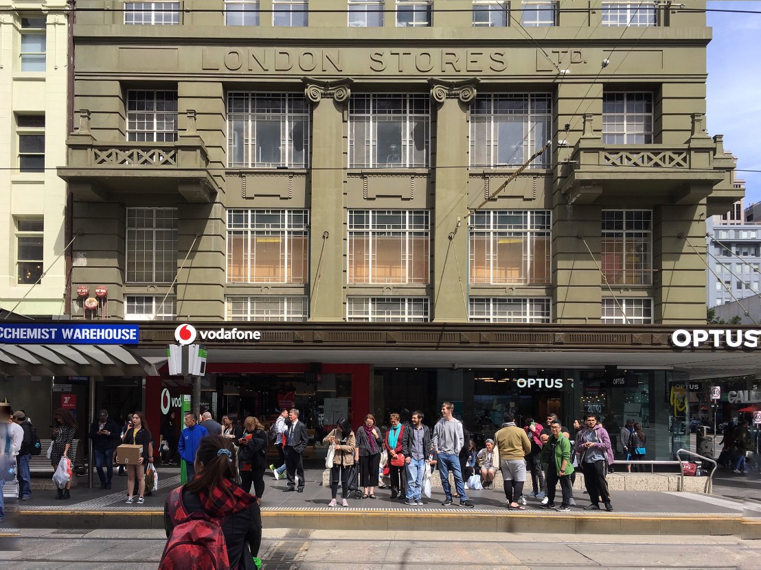 Great name, from when it was built by the eponymous menswear #departmentstore, who occupied the lower levels. Found some adds in 1924 for #rebuilding sale – ‘a british tweed suit for 22’6’. And another from 1922. Roger David still there carrying on tradition but no grand store interiors sadly. [Update 2018 Roger David went bust replaced by Optus and Vodaphone]