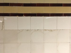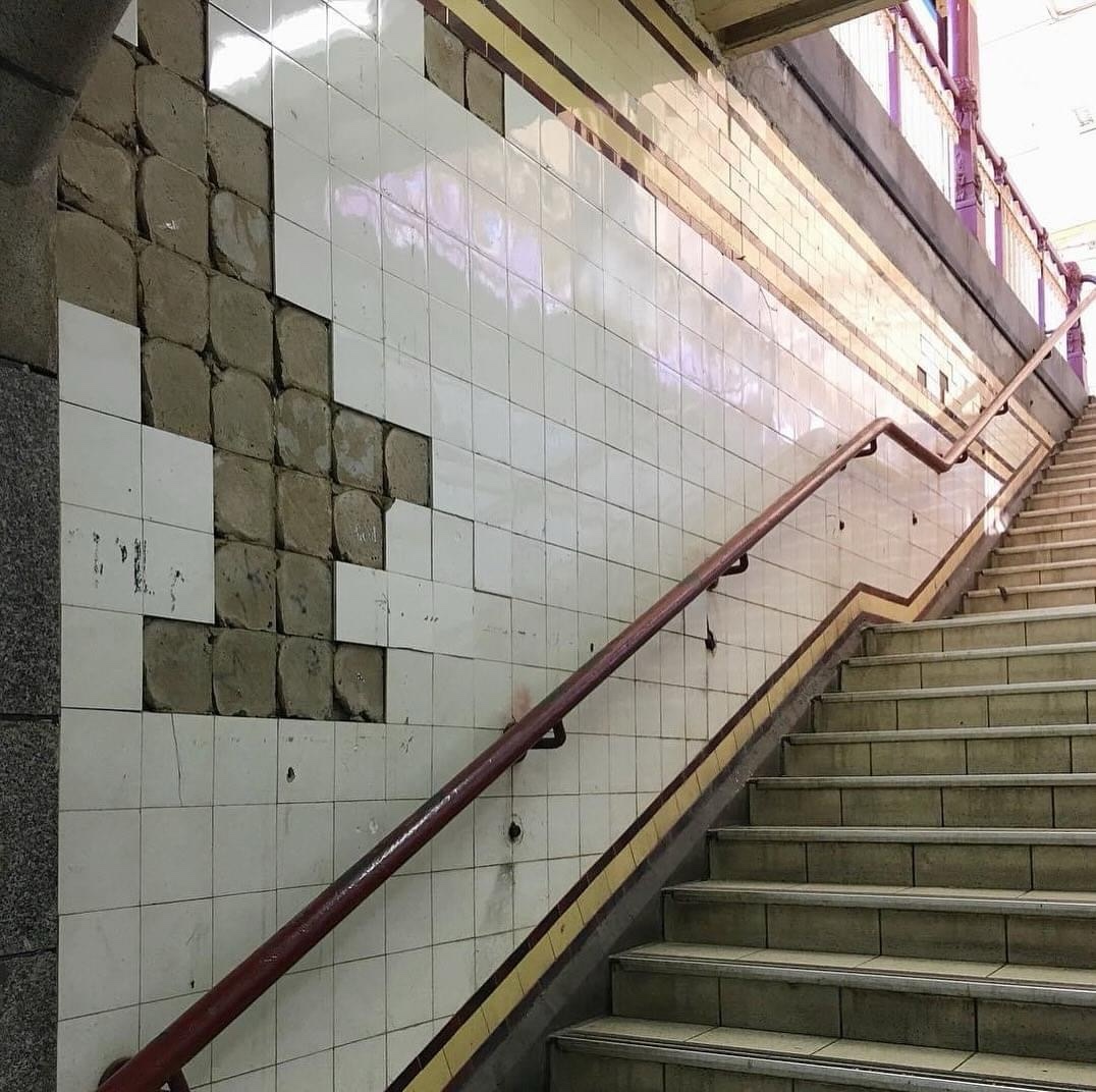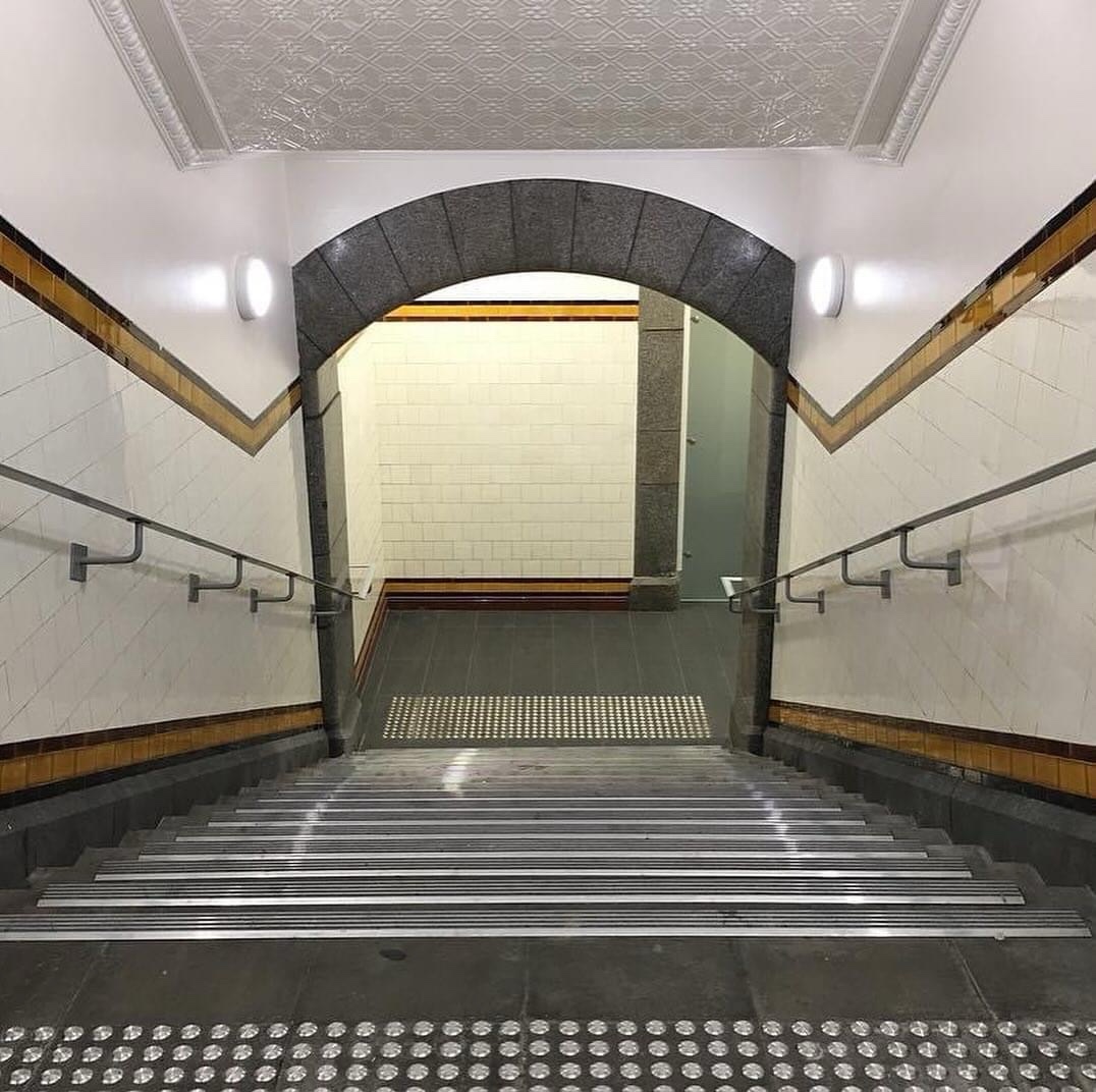 Repost 2017: More on the tiling repairs at Flinders Street Station. First time in my living memory (ie since the 70s) that any work has been done to properly repair these 1910 tiles, which line the subways, stairs, ramps and toilets. Love the pointing hands even if there’s no trains to St Kilda any more. Smart re-arrangement of the underpass toilets too; they swapped the men’s and ladies, since the men’s had more stalls, all preserved, while also opening up a path through to platform one. Great work from @lovellchen