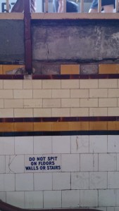 Very close but not exactly same – just noticed the tile repair works include new #paintedtiles in #FlindersStreetStation platform Degraves Street subway – and then I compared with a remaining original one. I’m not really complaining but on its own the new sign looks a bit odd, the O is drawn a bit thin and the middle stroke of the F not long enough – maybe they copied different tiles to one I photographed? I see the tiles are #stackbond instead of #stretcherbond, but I assume the tiles were like that before. The hand is very nice, has more shading than the original. Update : I’m told that the restoration architects @lovellchen had great trouble finding anyone to reproduce the tiles.