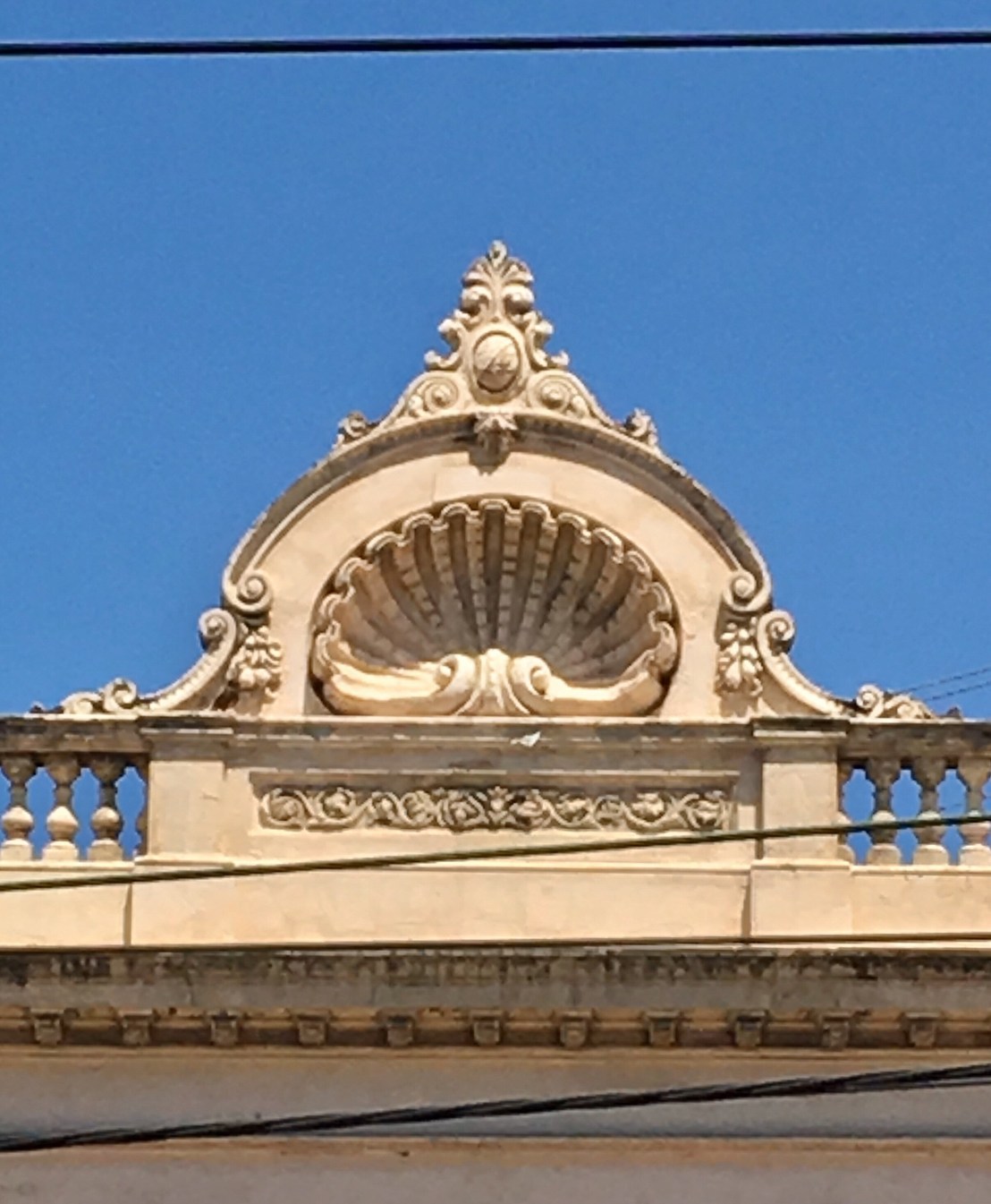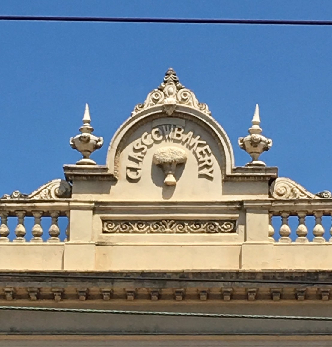 A series of excellent Victorian parapets in #clarendonstreetsouthmelbourne, a bit larger and more elaborate than usual – and there’s one with a book, must’ve been a bookshop, and another with a #wheatsheaf for a bakery ! #melbterraceparapets