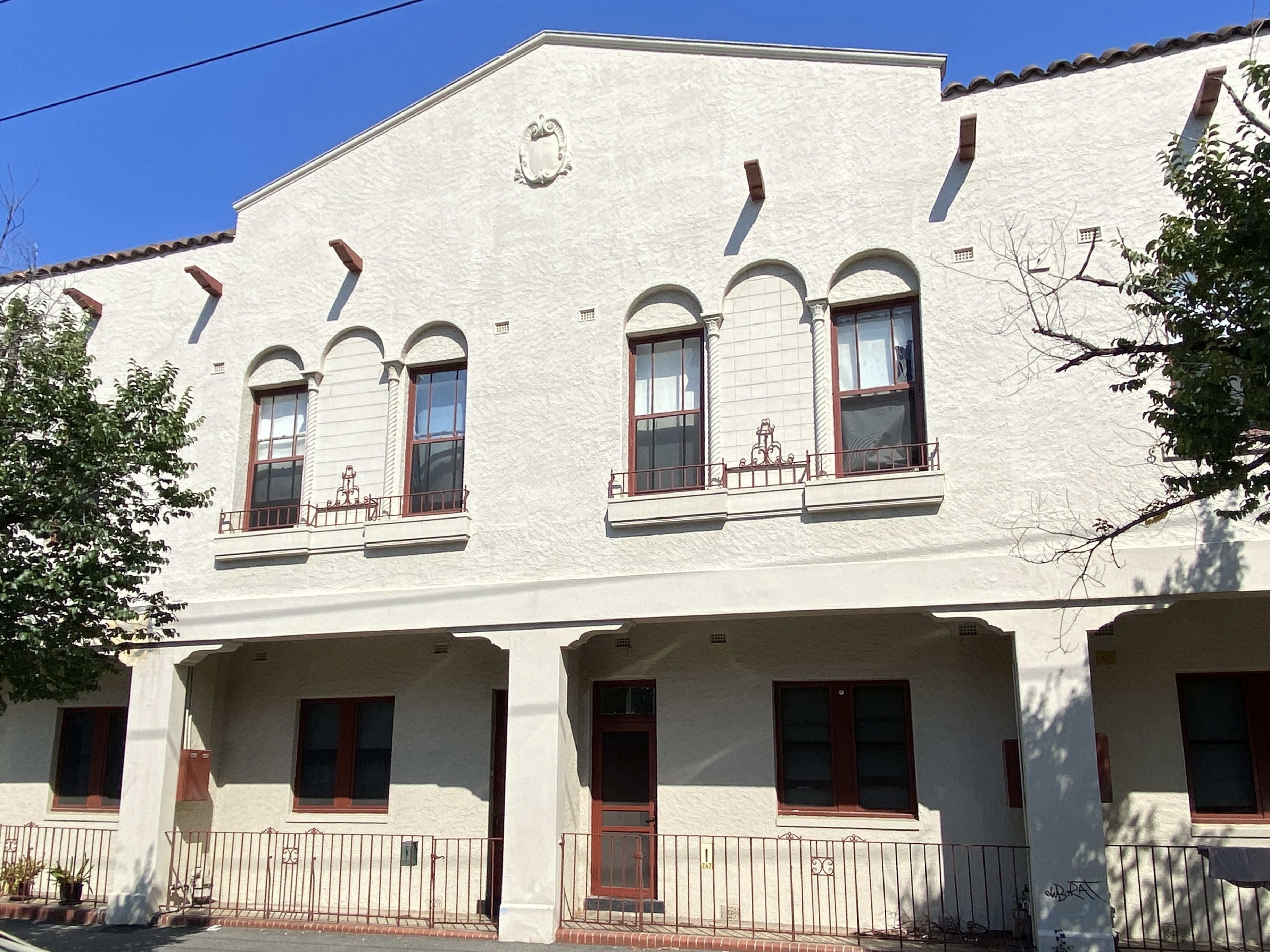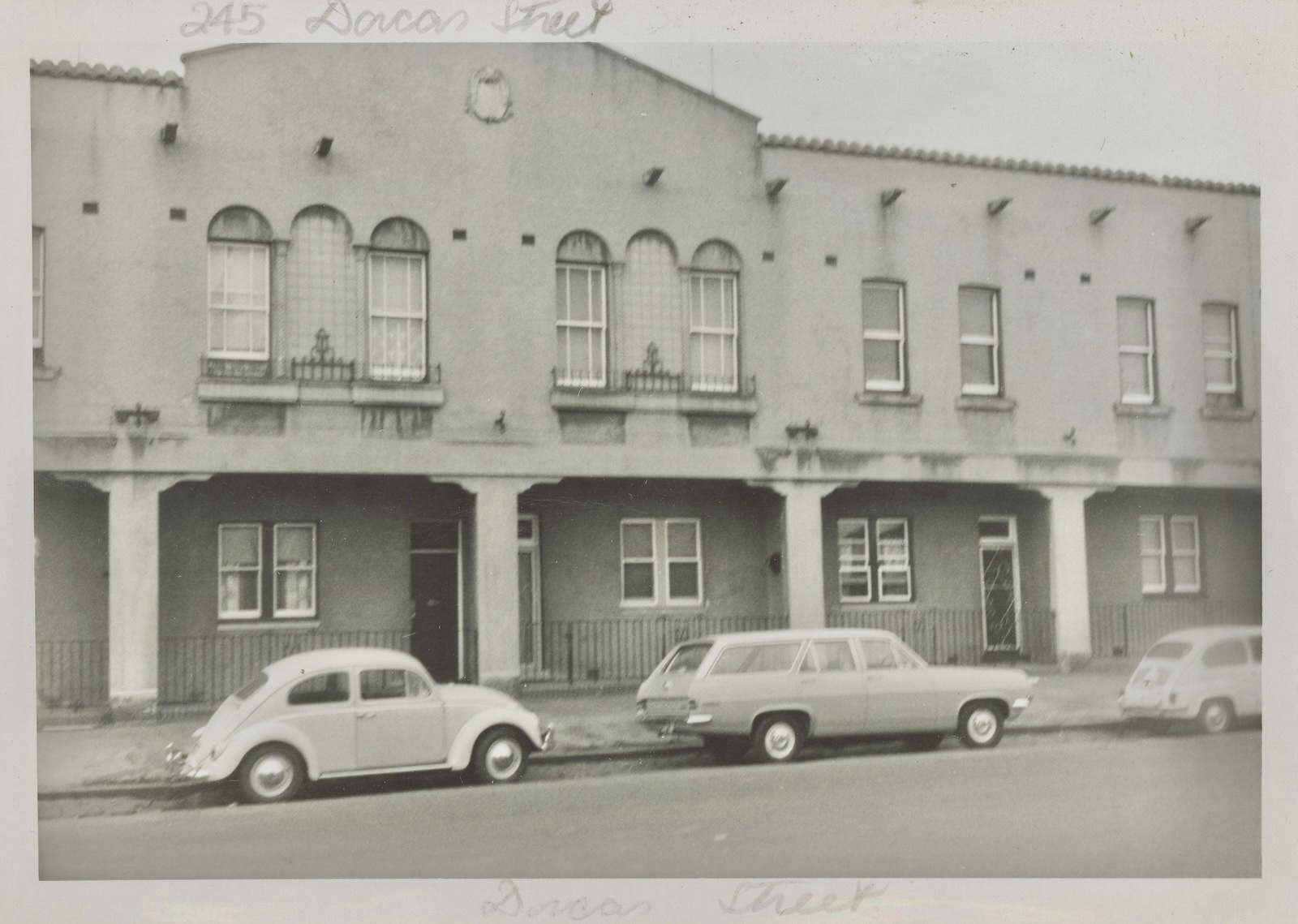 A rather plain version of the interwar Spanish style, an influence direct from Hollywood – but this one in Dorcas Street South Melbourne is interesting because it’s been applied to some 1885 Victorian terrace houses. It was built as a row of shops, but I guess not successful, so refashioned as houses, with inset porches where the shopfronts once were. The Port Phillip Heritage Review says maybe 1920, which is way earlier than any other popular use of Spanish, so I checked the directories, and in 1935 the whole row was ‘vacant’, so must have been about then. Old pic is 1967. They’re in good order and still all the same because along with the whole block, they were built on land owned by the Melbourne Orphanage, eventually sold to the State Govt in 1974, and pretty much all the houses were restored, and used as public housing, and they still are. Hmmm it’s a wonder the State Govt hasn’t decided to sell the lot.