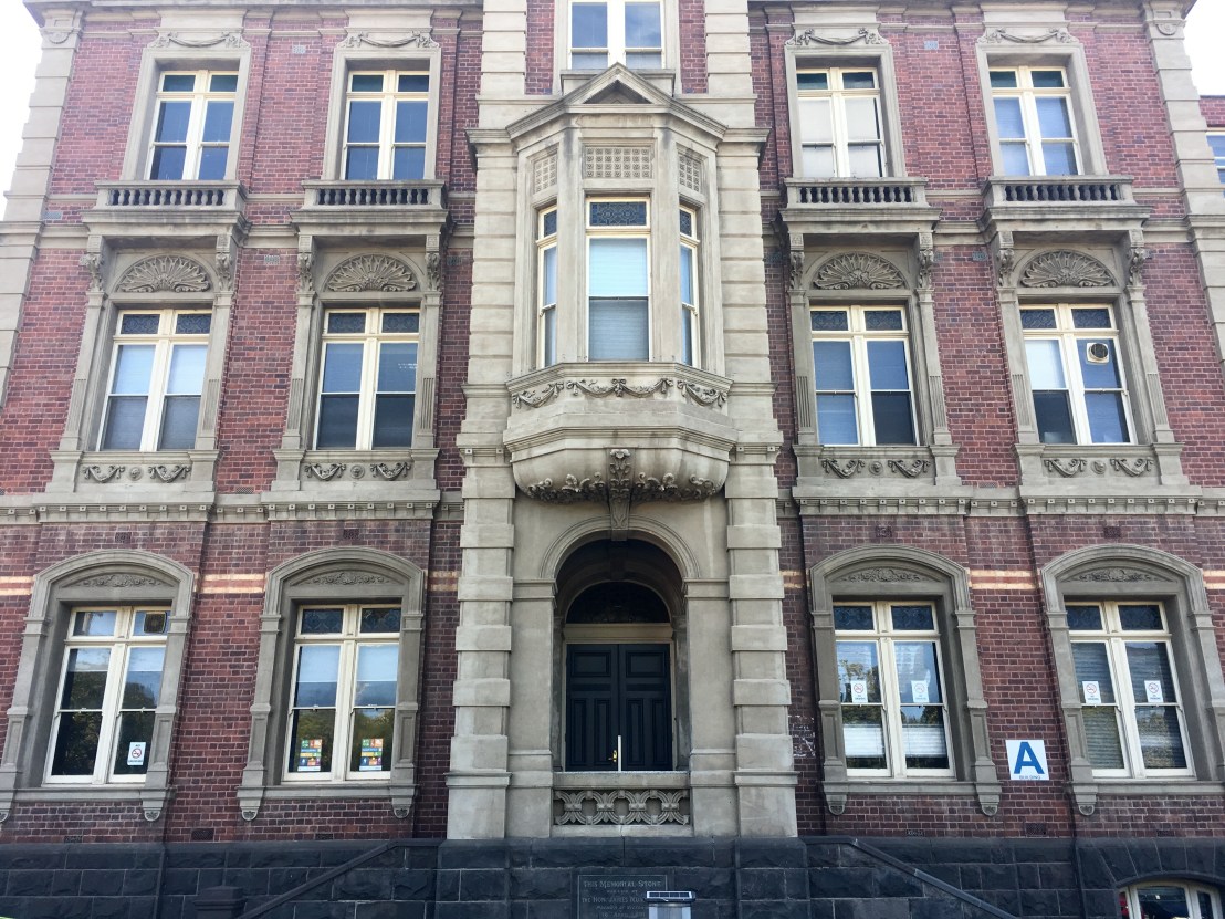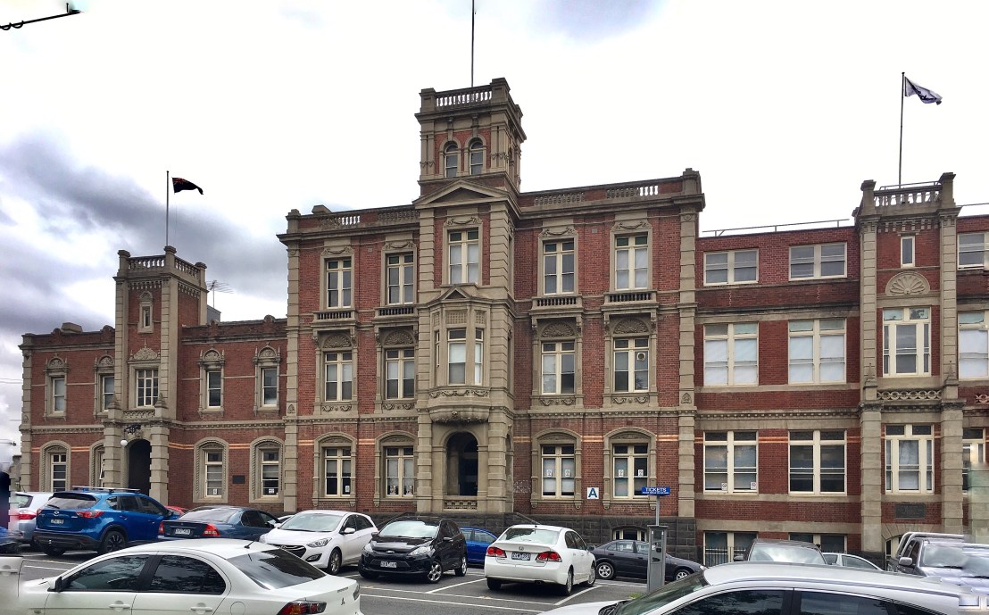 The impressive and unusually detailed original buildings of the #GordonTechnicalCollege in #Geelong. Looks like all one piece but actually three stages – far left by #AlexanderDavidson in a rather special ‘#ScotsJacobeanRevival’ was the first building of the college in 1887; the middle bit by another architect, EM Blake, similar but not as ornate in 1891, then the closest bit is 1916 (top floor added 1961 rather spoils it). Also, never knew, but #TheGordon was named after General Gordon, the ‘hero of Khartoum’ who died bravely defending that outpost of Empire in 1885 (played by Charlton Heston in the 1966 movie).