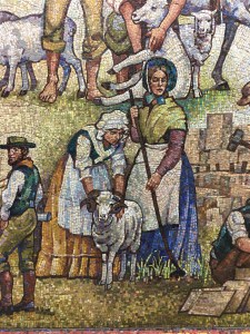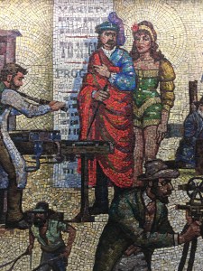You can tell this was made in the 1970s – the last part is ‘#ComputerAge’ 😁. It’s the huge #mosaic ‘#HistoryofGeelong’ that runs the whole length of the foyer of the #GeelongStateOffices, made 1977-80 by state artist #HaroldFreedman. I seem to have photographed the ladies that feature, like the bikini girl, the 30s dancer and the 1880s actress, and the 1900 lady #telephonist (and #pioneerwoman of course).