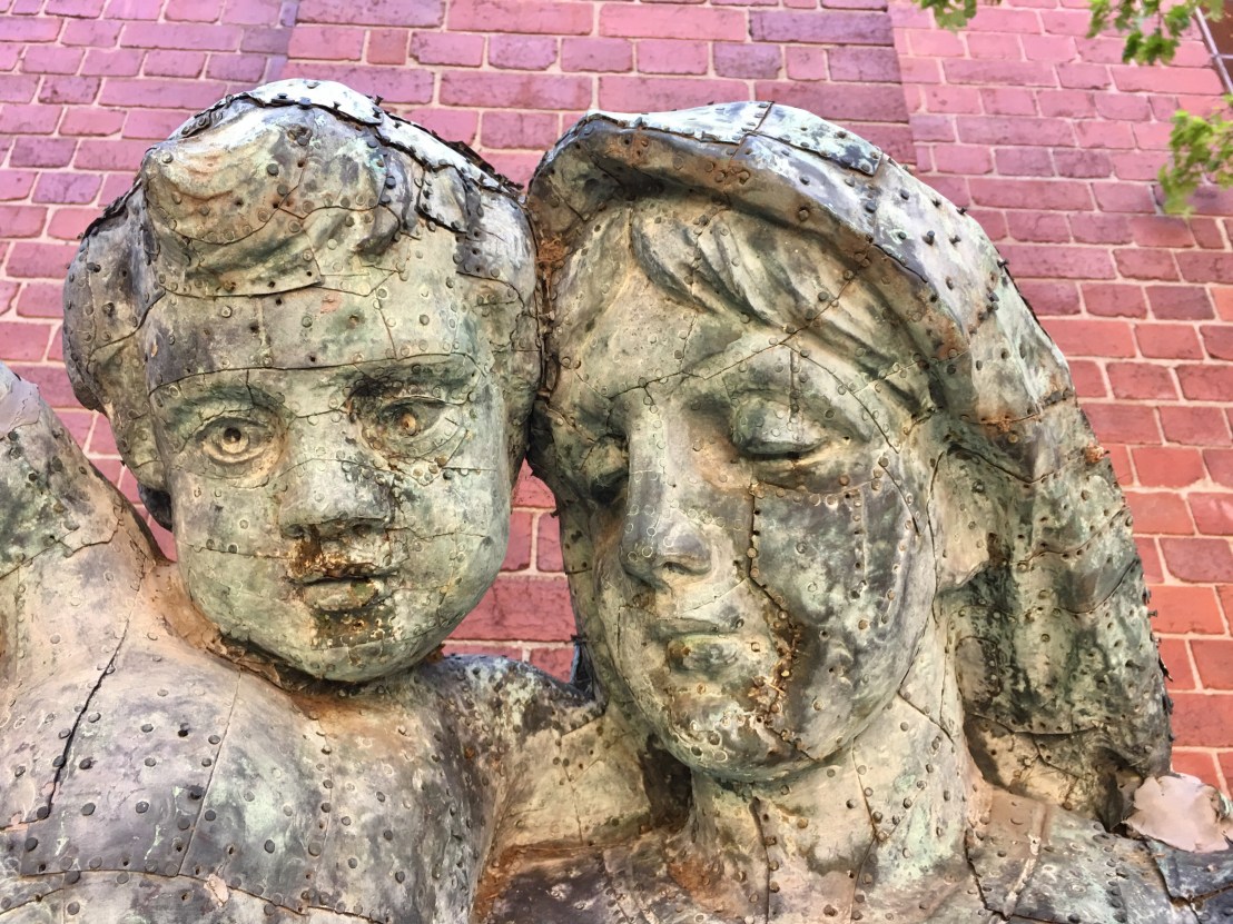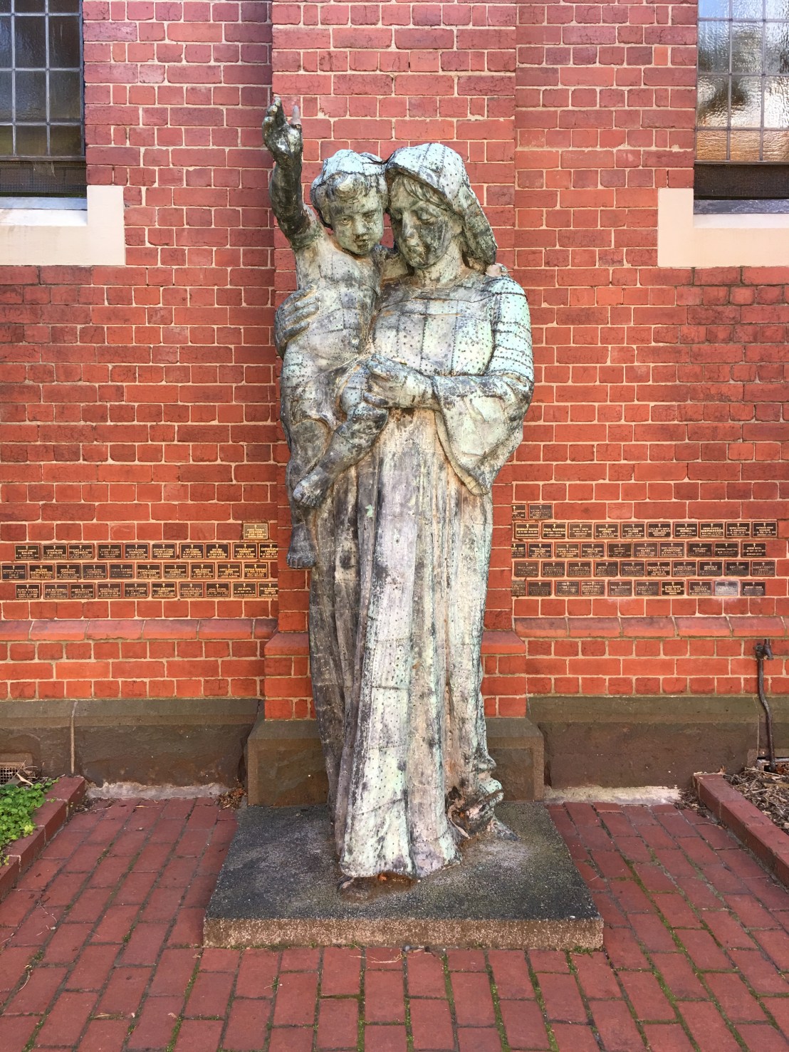 Tucked away on the side of #OurLadyofMountCarmel in #MiddlePark is the original #RobertPrenzel 1928 #copper over carved timber #MadonnaandChild, which blew down in a storm in 1987 and was replaced by a replica. Neither of them look very coppery… Prenzel did a lot of stuff for various churches at the end of his career – apparently because WW1 anti-German sentiment led to losing commissions.