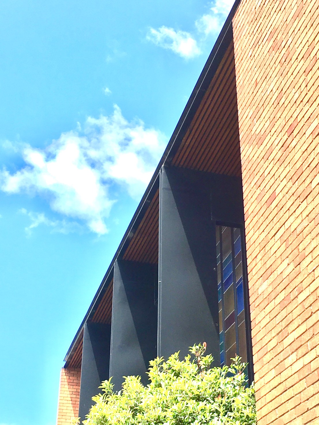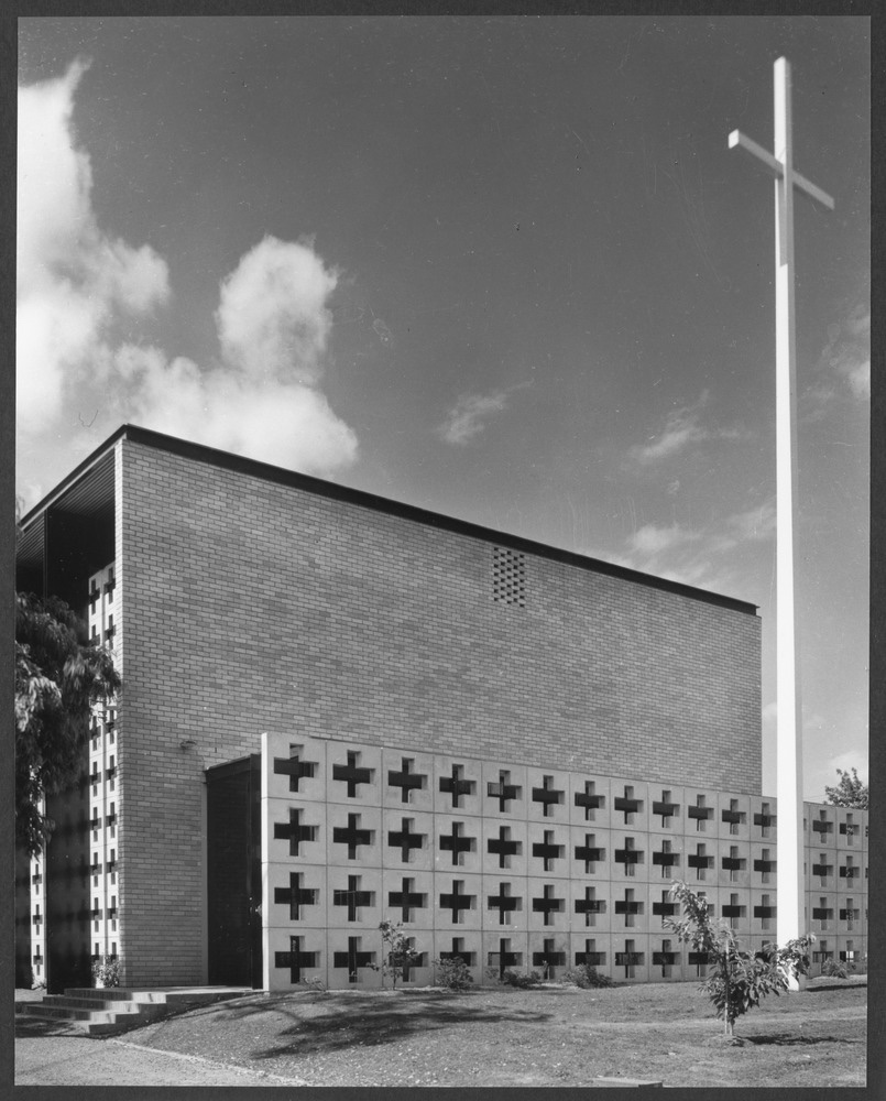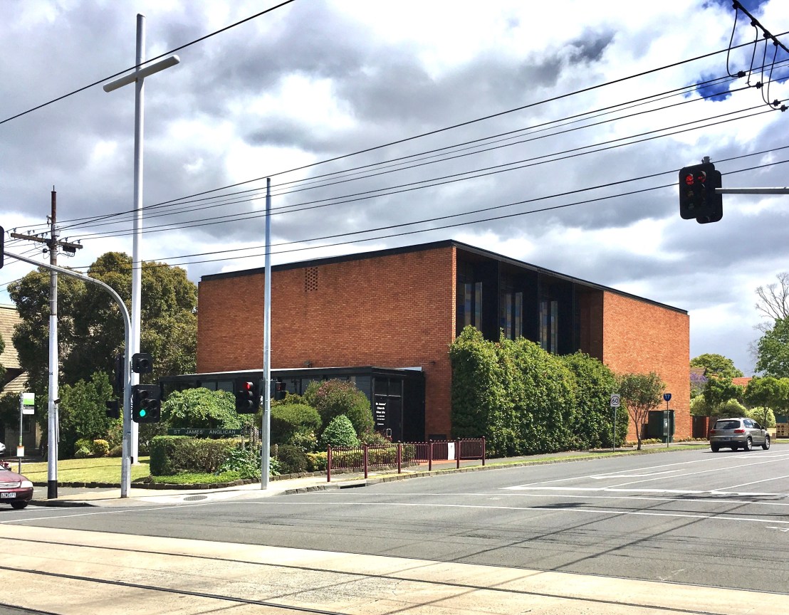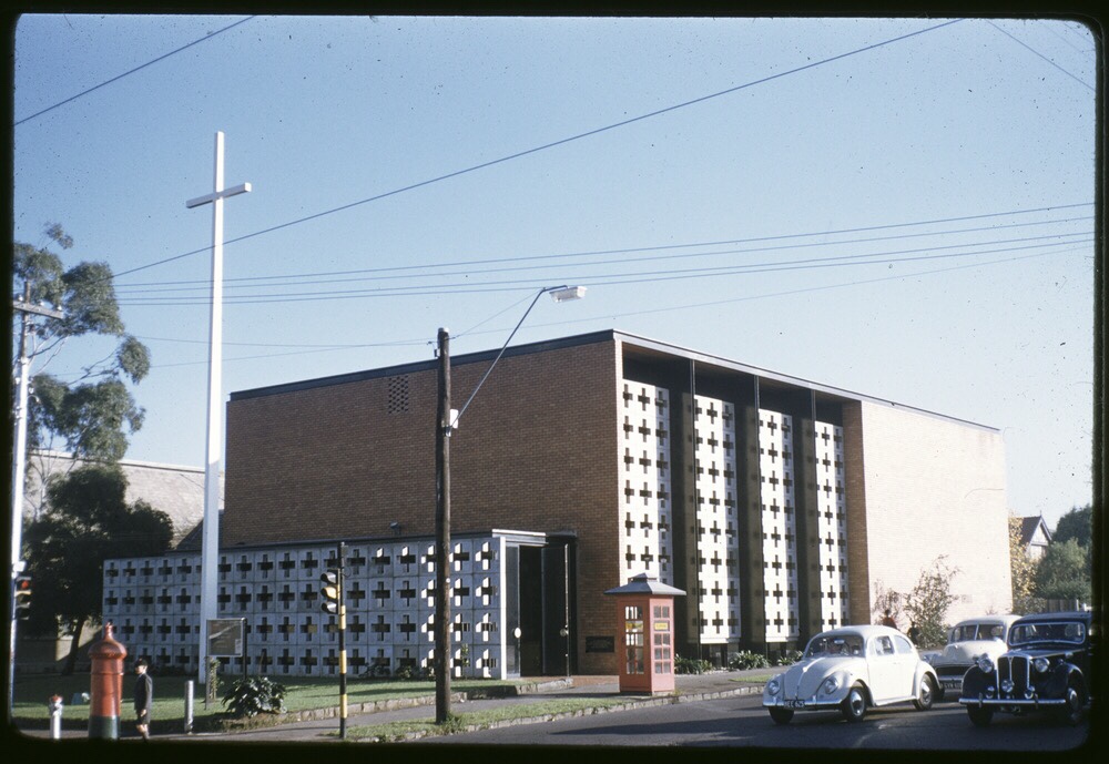 #StJamesGlenIris, #BogleBanfield, 1959, Melbourne’s most minimalist modernist church, and therefore the one that architects like the most. Originally it had #concrete screens with cross cutouts, making it (somewhat) more obviously a church, but they were removed c2005, leaving a brick box with inset black windows. (The nearby #Korowa girls school has a section of the same blocks from 1964, also by BB).