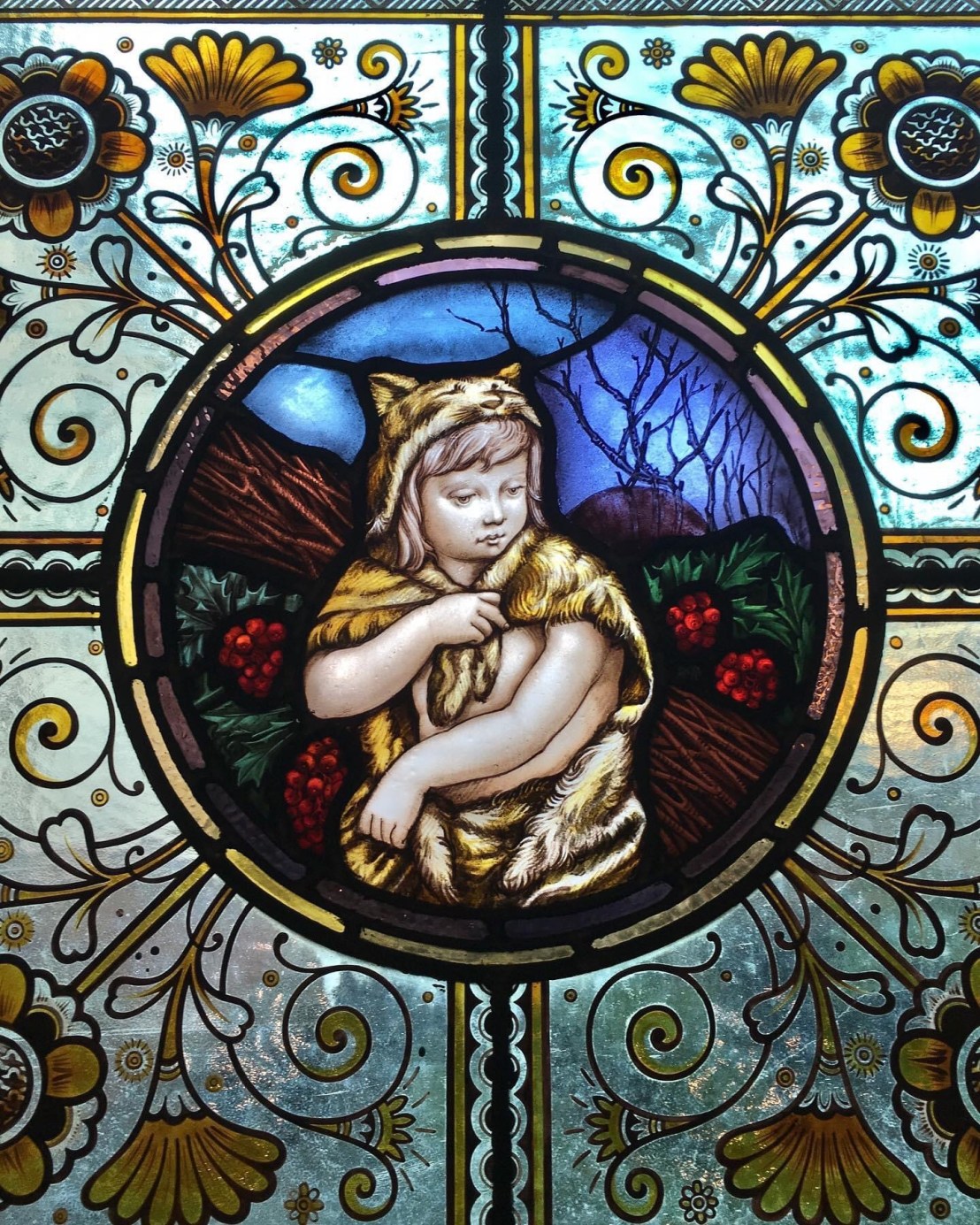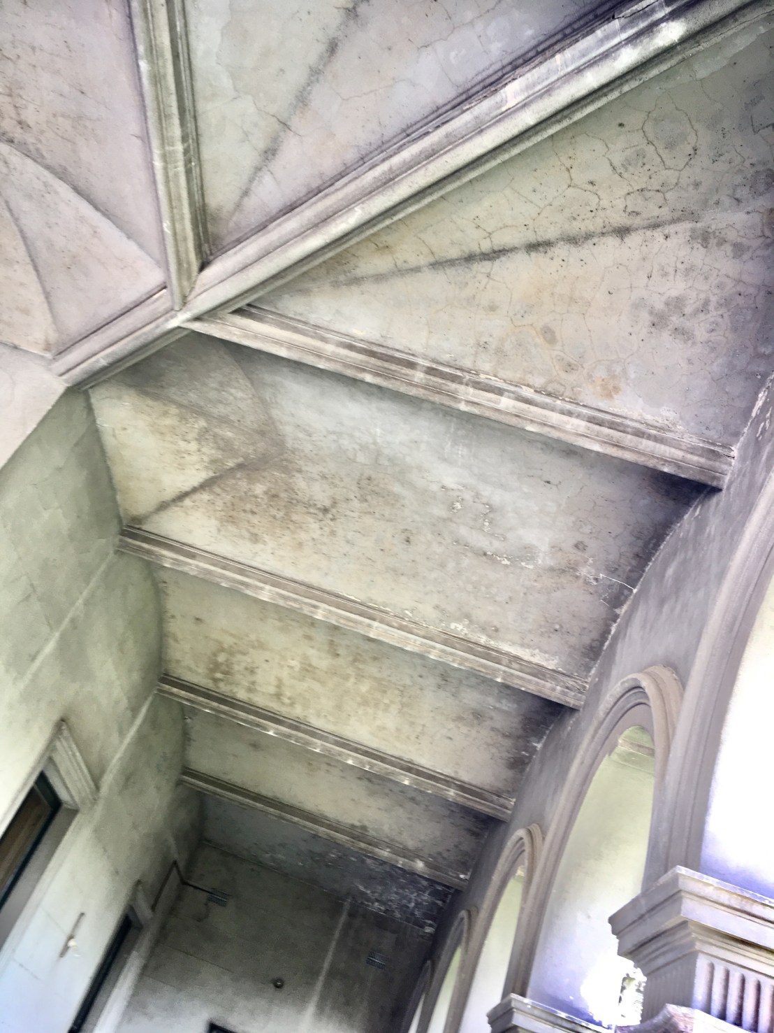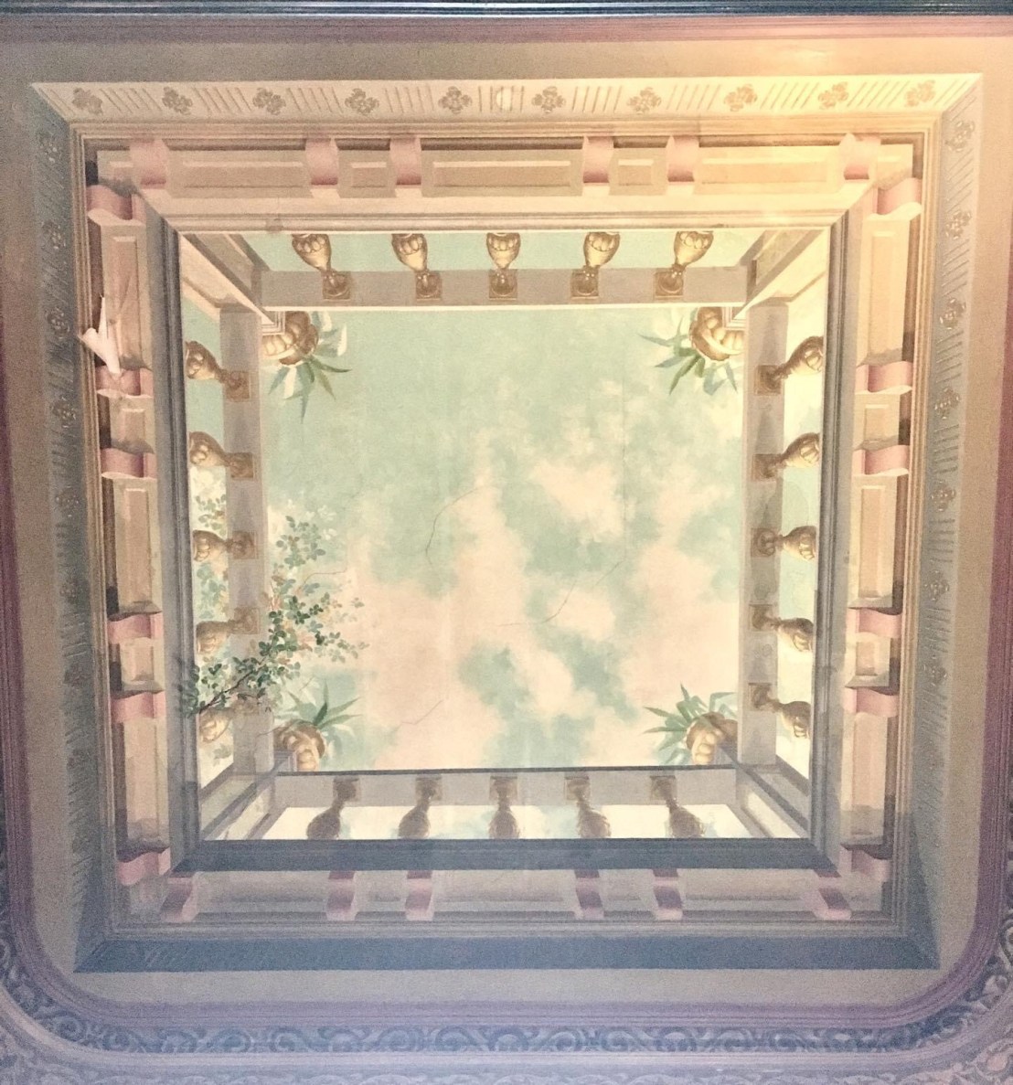 The window is by #FergusonAndUrie (of course) depicting the four seasons – the bottom one looks like winter. The bronze lady lamp in the corner was one of the objects returned to the house by a previous tenant. If you look up on the stairs at #Labassa, there’s a #trompeloeil view of a classical atrium. Apparently there was a false ceiling under this which fell down, and #voila ! Why on earth someone would cover this up I don’t know, especially given everything else was carefully retained (update answer – because bits of the plaster were falling off).