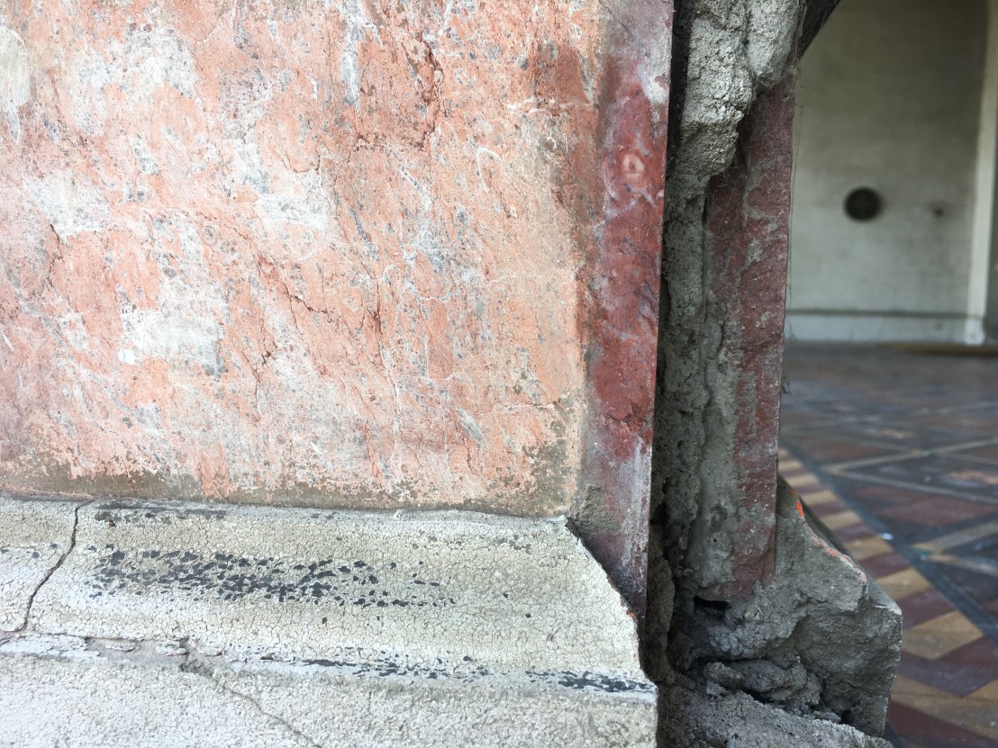 Discovery ! The pale pink #marble all over #Labassa was originally deep rich red; I wetted a bit that’s been revealed by this broken bit. #JABKoch 1890.