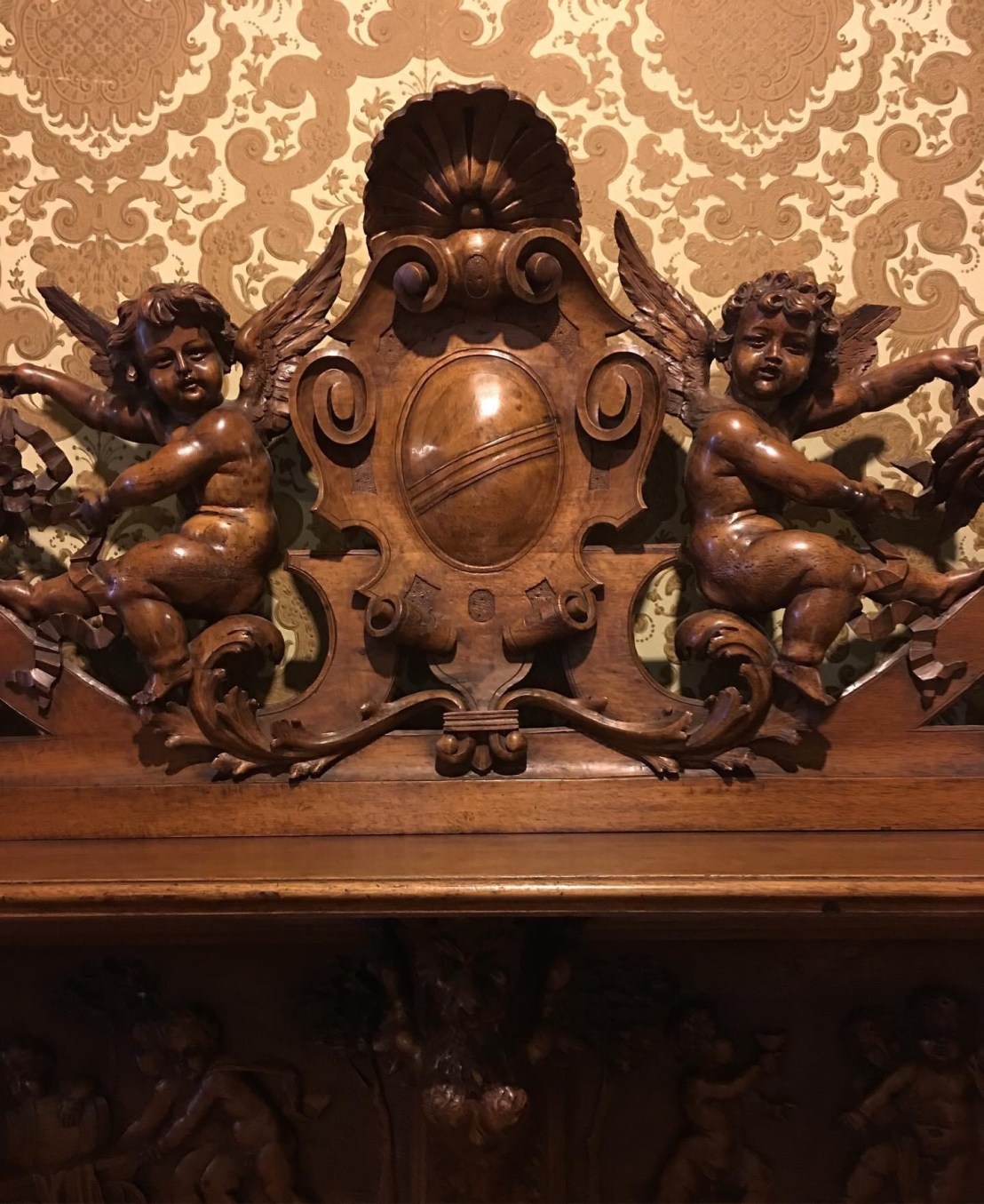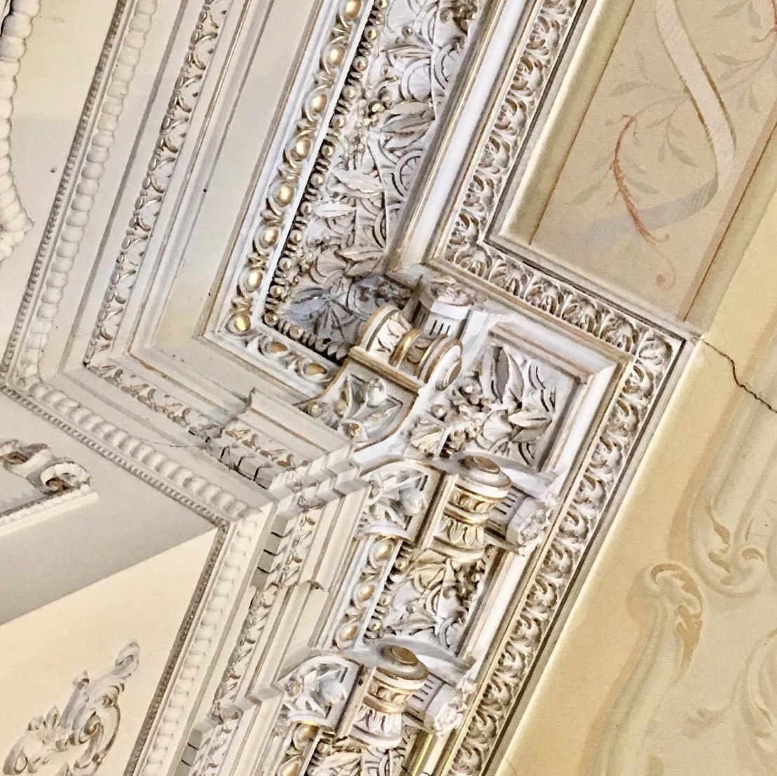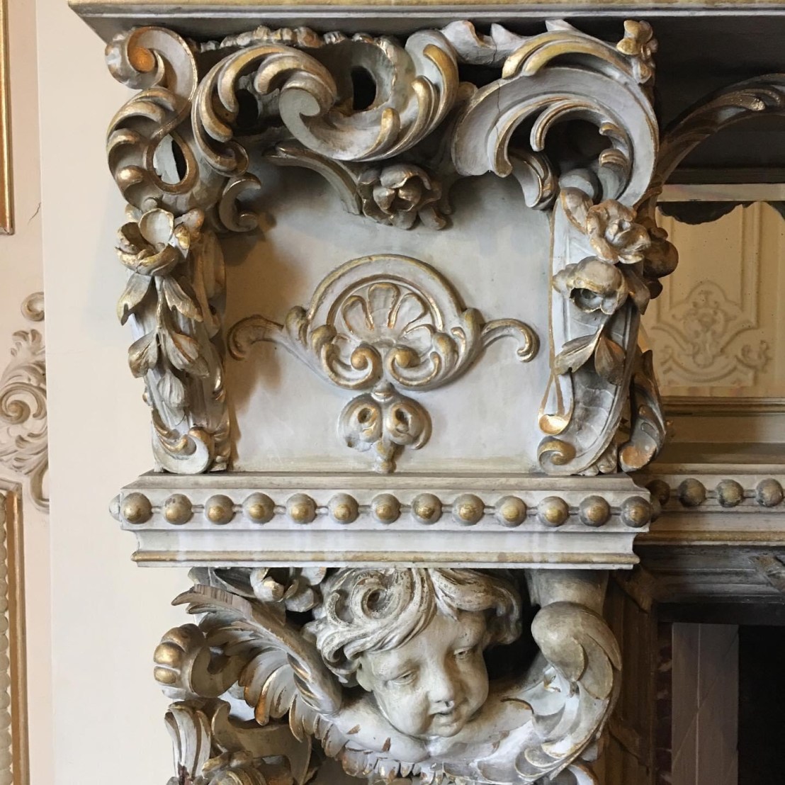 My favourite room at #Labassa is the #drawingroom, done entirely in #rococo, which I suppose was meant to be light and feminine compared to the darker tones of the other rooms. It’s a double room, with two parts, carvings everywhere, which I suppose was originally glittering in gold, and pastel tones in the ceiling. I have an idea that this room was actually decorated in 1904 when purchased by John Watson, rather than an 1890 interior, but of course I can’t find confirmation of this. You’d think there’s be lots on line, but no, not really. Update : it’s 1890 according to the book published by the Trust in 2020.