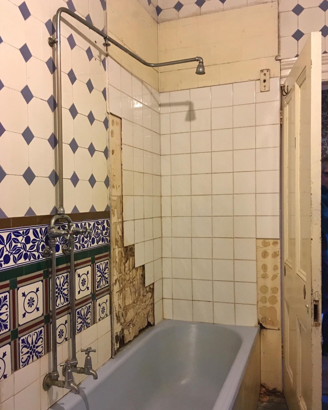 The bathrooms at #Labassa, a combo of 1890 tiling, and 1950s/60s fittings. Restore or leave ? Can’t decide. I’m sure they’re not restored because A. $ and B. the trust can’t decide either.