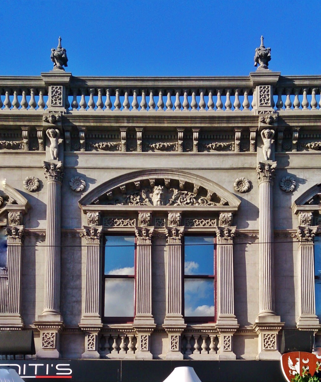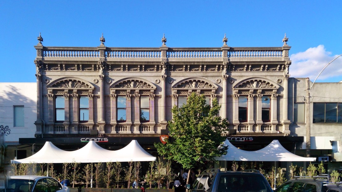 Random photo from the archives, Xmas 2015; the fabbo shops in #FaradayStreetCarlton, built 1886, long occupied by #Brunettis before they moved round the corner in 2012. They’re by designer/builder #NormanHitchcock with his characteristic #HighVictorian elaboration, with #cherubs, extra flowery brackets, giant faces, #Corinthian everything, and solid ‘muscular’ details, namely the fat fluted window #pilasters. He did another shop row in 1889 in Smith Street which is very similar, but the pilasters are even fatter! Love it.