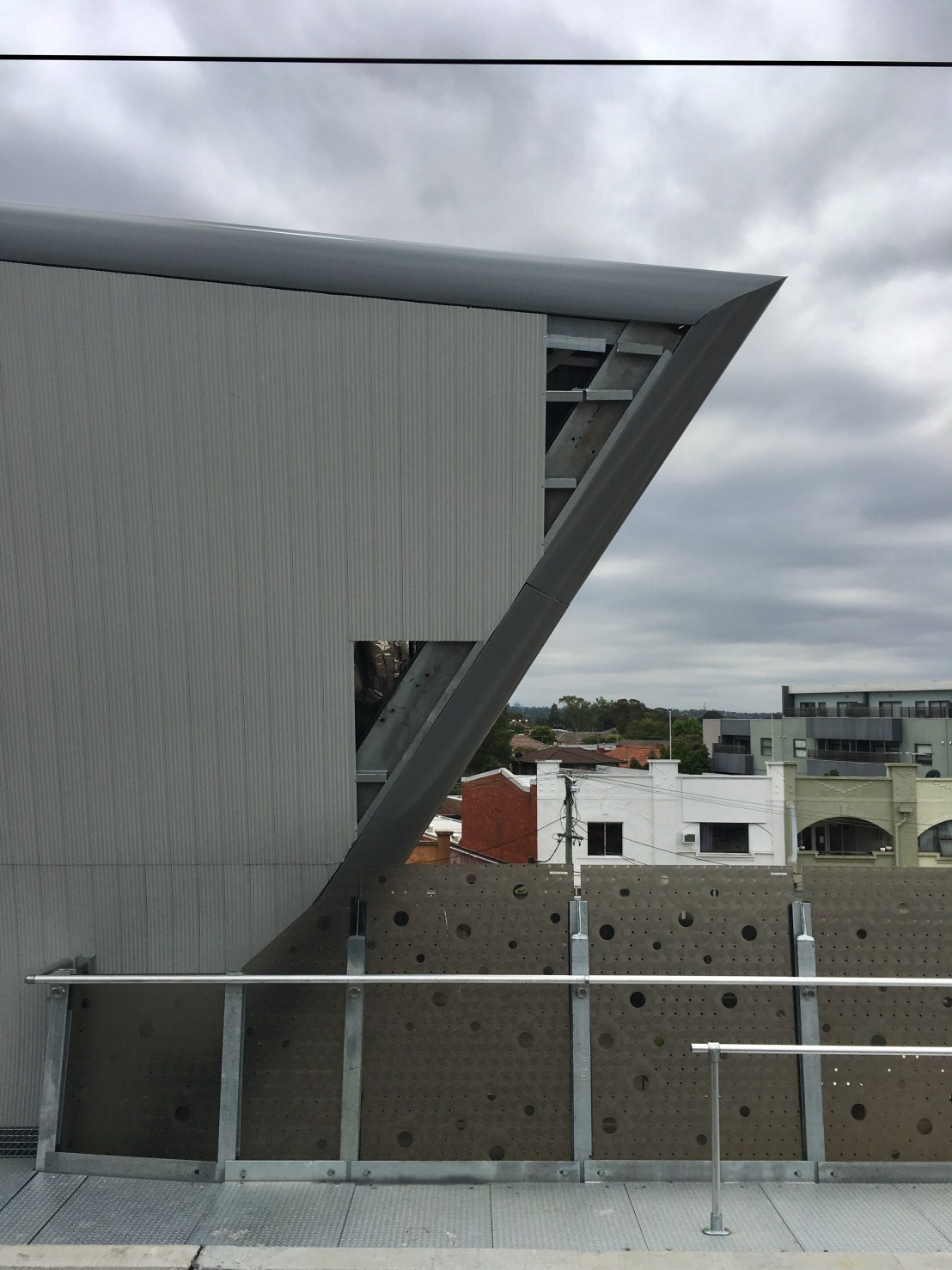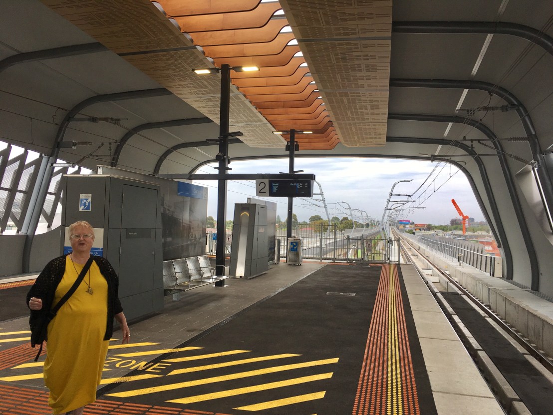 The vaguely #spaceage canopies at the new #Skyrail, @coxarchitecture, an exact mid point of groovy and practical low maintenance. Surprised to realise those huge canopies are over one far end of the #Skyrail stations platforms, which puts them above the main ground level concourse I suppose, and I guess you can move there if the rain gets horizontal, but still. Another surprise that the #platforms were #asphalt ! Not tiles or bluestone like below; but I like asphalt. Also surprised that #HughesdaleStation wasn’t quite finished. Thanks to my pal @deddle8ug for Sunday’s trip.