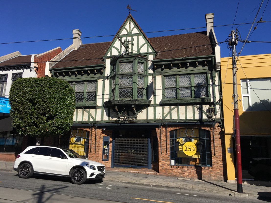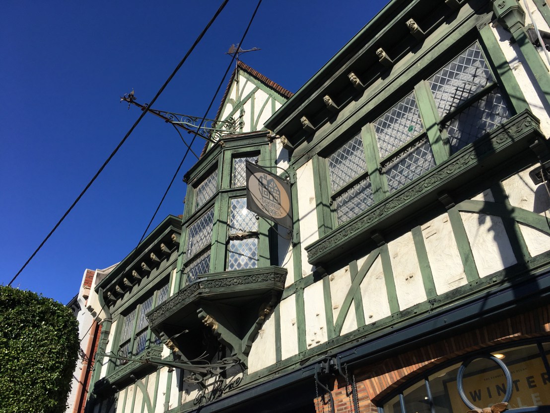 As you know, I do love suburban #MockTudor shops (#OldEnglish is the proper name), and #ToorakVillage has the best examples. No 474-6, south side east end is the best one, dating from 1932, Built for William Ford chemists, and designed by #RobertHamilton, who said ‘I wanted to show the good Old English architecture is really good’. It’s not just some stuck-on #haltimbering, but carved woodwork, a big bay window topped by a gables#, diamond pane #leadlight windows, with window boxes etc.