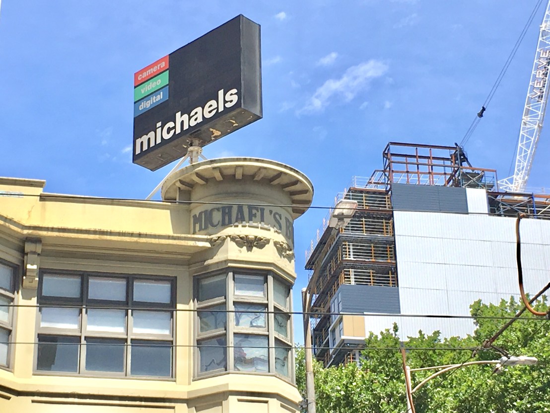#MichaelsBuilding, cnr Lonsdale & Elizabeth, 1916, think we learned about this in architectural history classes – it’s earlyish #ReinforcedConcrete, a fave subject of Prof Miles Lewis, and allowed the extensive seemingly unsupported windows (the supports are hidden at the inside corners). Great little building. By #ArthurPurnell, a prolific architect best known for his few Chinese influenced projects.