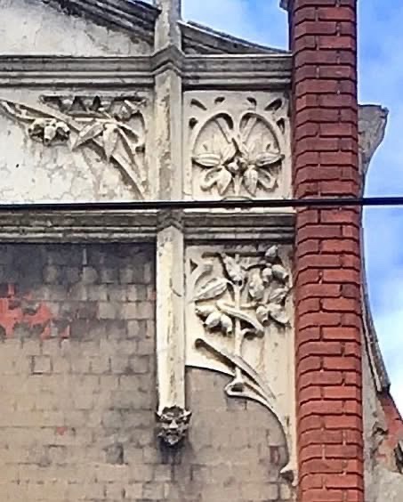 Updates 2024: I’m told that the facade was intact in the 70s, and the tiles were blue. A follower also pointed out it has tiny devils heads in the decoration, as well as excellent Art Nouveau tendrils with gum leaves and gum nuts peeking through. I think it’s a a kebab shop now.