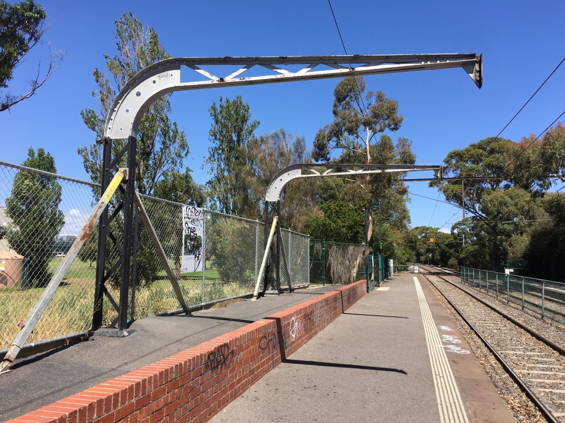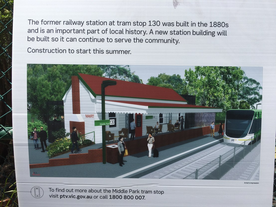 All that’s left of the 1880s #MiddleParkStation building after the fire of the night of 17th Feb 2018 – I pass by most days but hadn’t noticed it had burned down till I read about it ! (too much #tramstagramming?) It had been a cafe called #MART130 (tram backwards plus stop number) since at least 2006 where patrons sat at cute old tables while #trams stopped right in front. Didn’t look too damaged, but guess it was, ‘cos there almost nothing left. It’s going to be reconstructed according to the recent-ish signs ‘this summer’; the cafe’s Facebook page says it’s been terrible dealing with @YarraTrams, no response, no urgency, so not scheduled to be done till May (though Yarra Trams paying for the basic reconstruction). If it wasn’t for these #stanchions, you wouldn’t know something was missing.