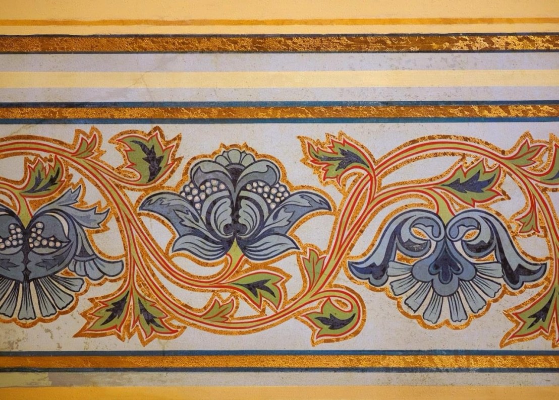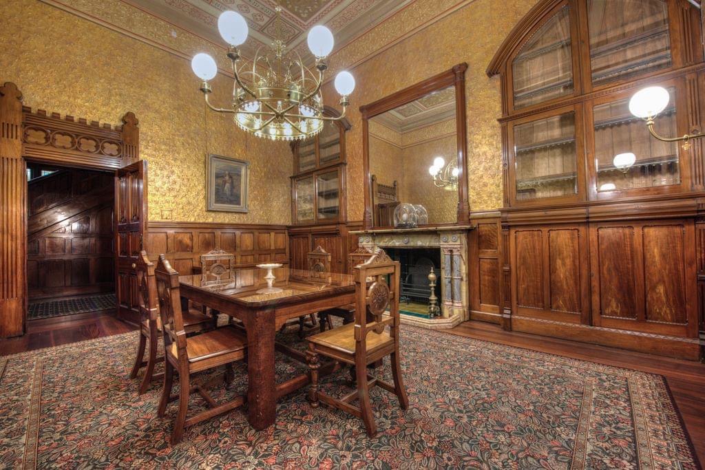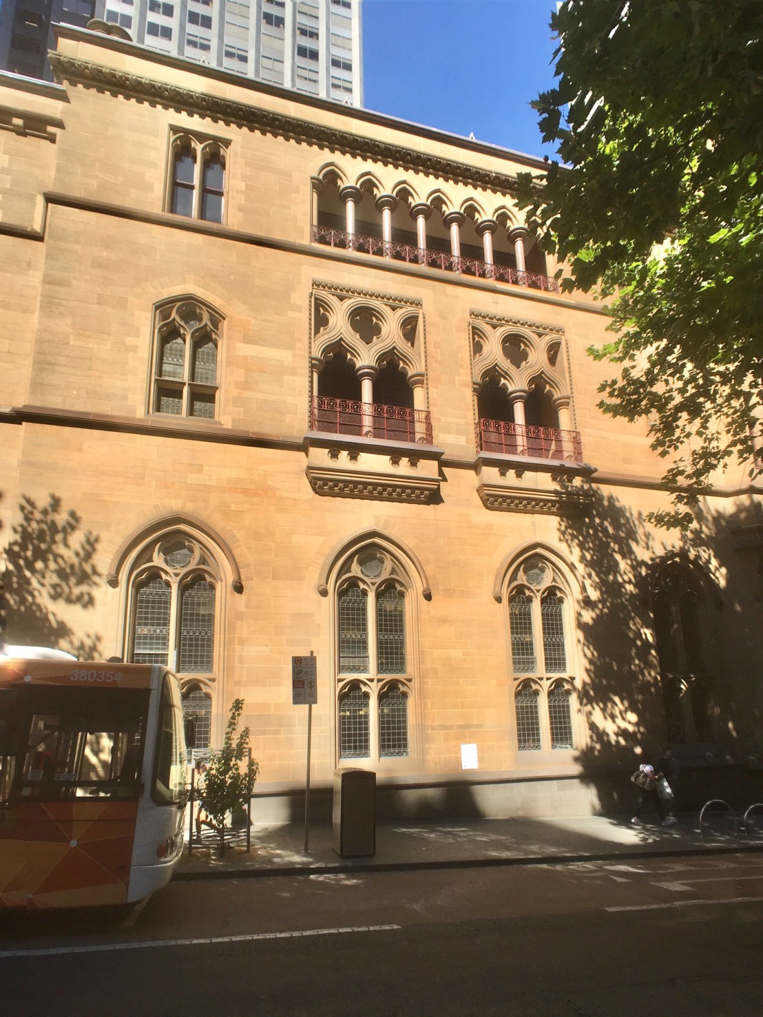 Oh look, the ANZ bank have a very detailed website about their 1880s Gothic Bank on Collins Street, in fact mostly about then bank manager George Verdon’s house upstairs, designed by William Wardell apparently with plenty of input from Verdon- now called the Verdon Chambers, not generally open, but all fully restored in the 90s … check out the stencils, the gold leafing, the carved timber dining room, the spacious hall, the lights and even the knobs.