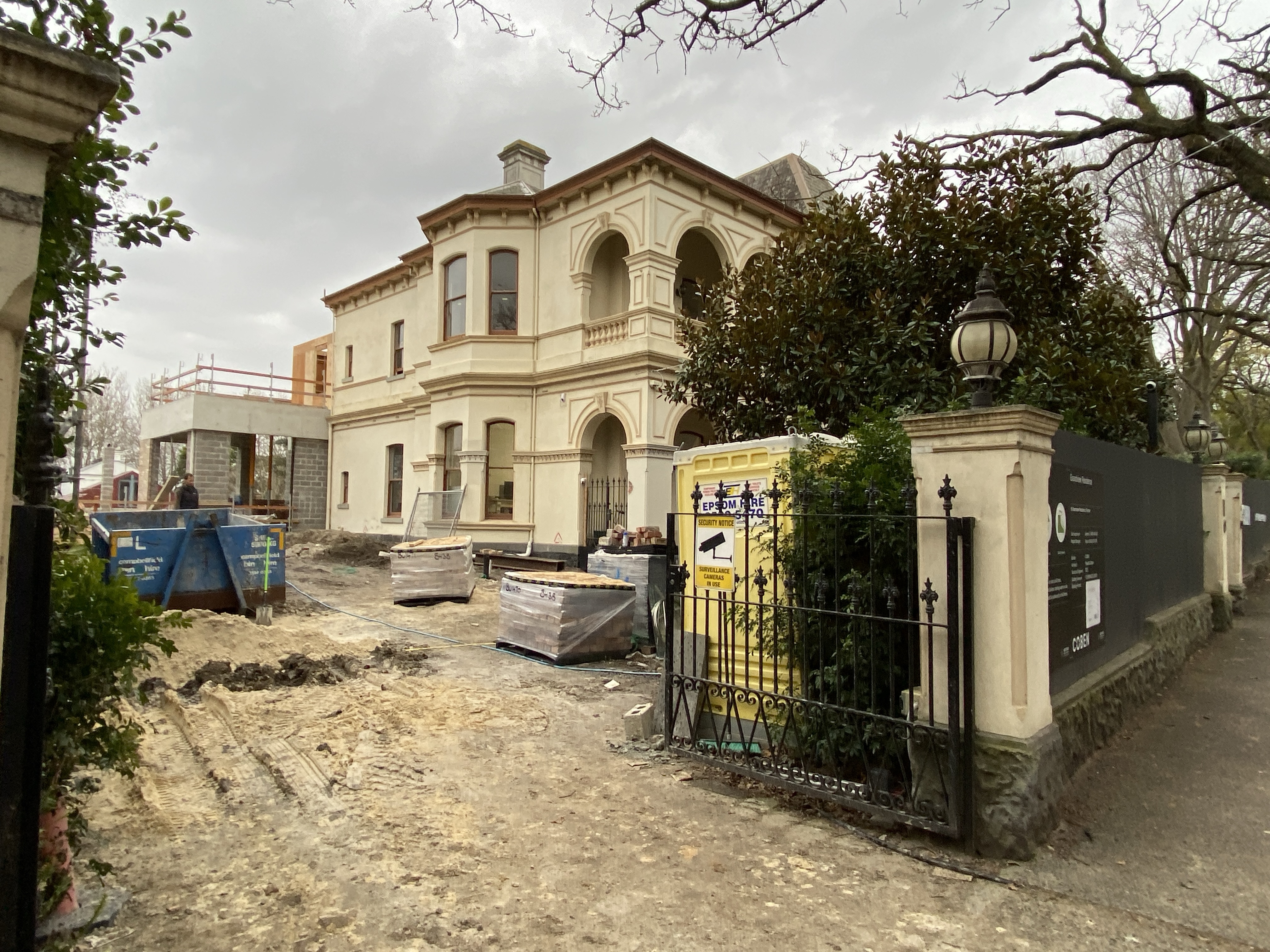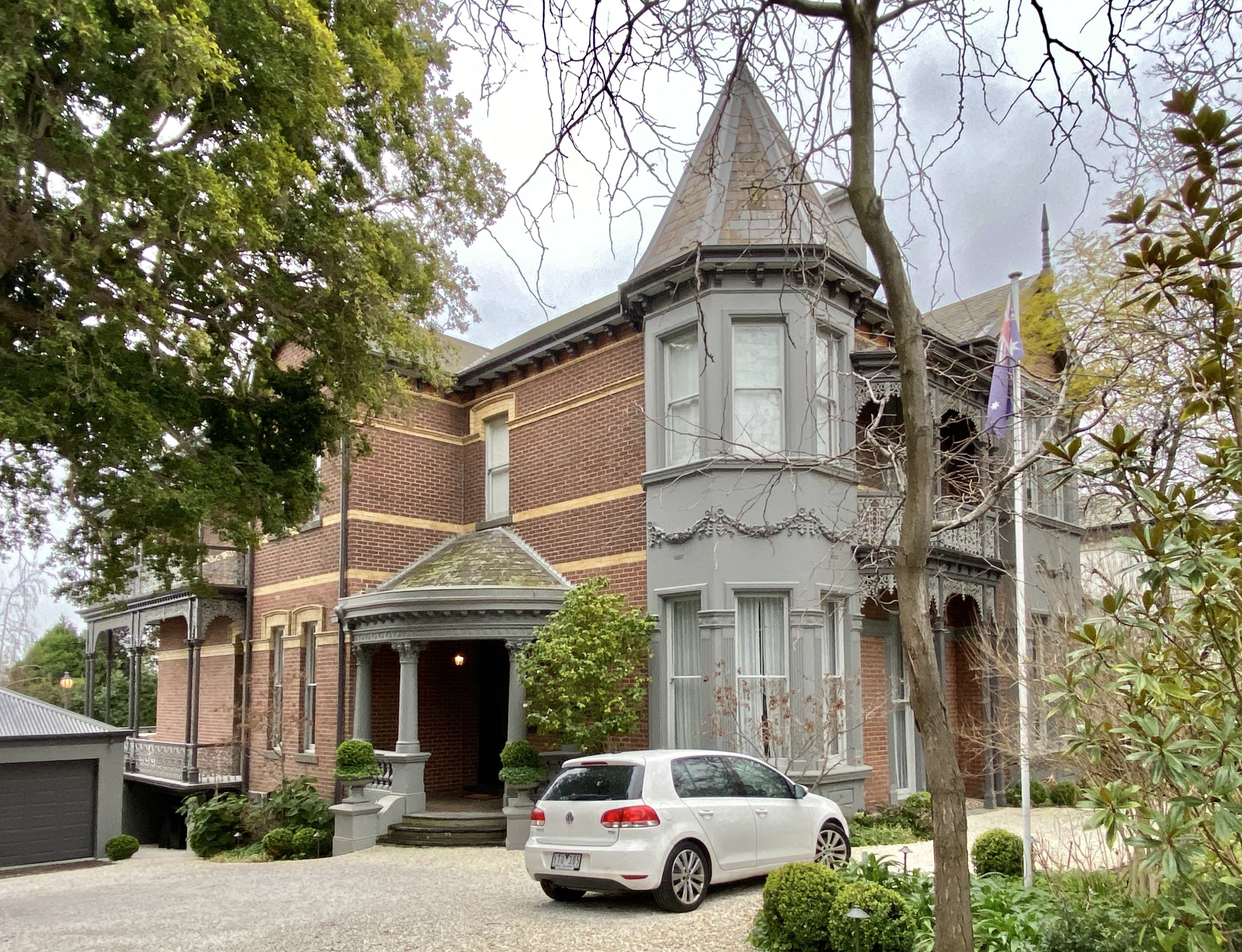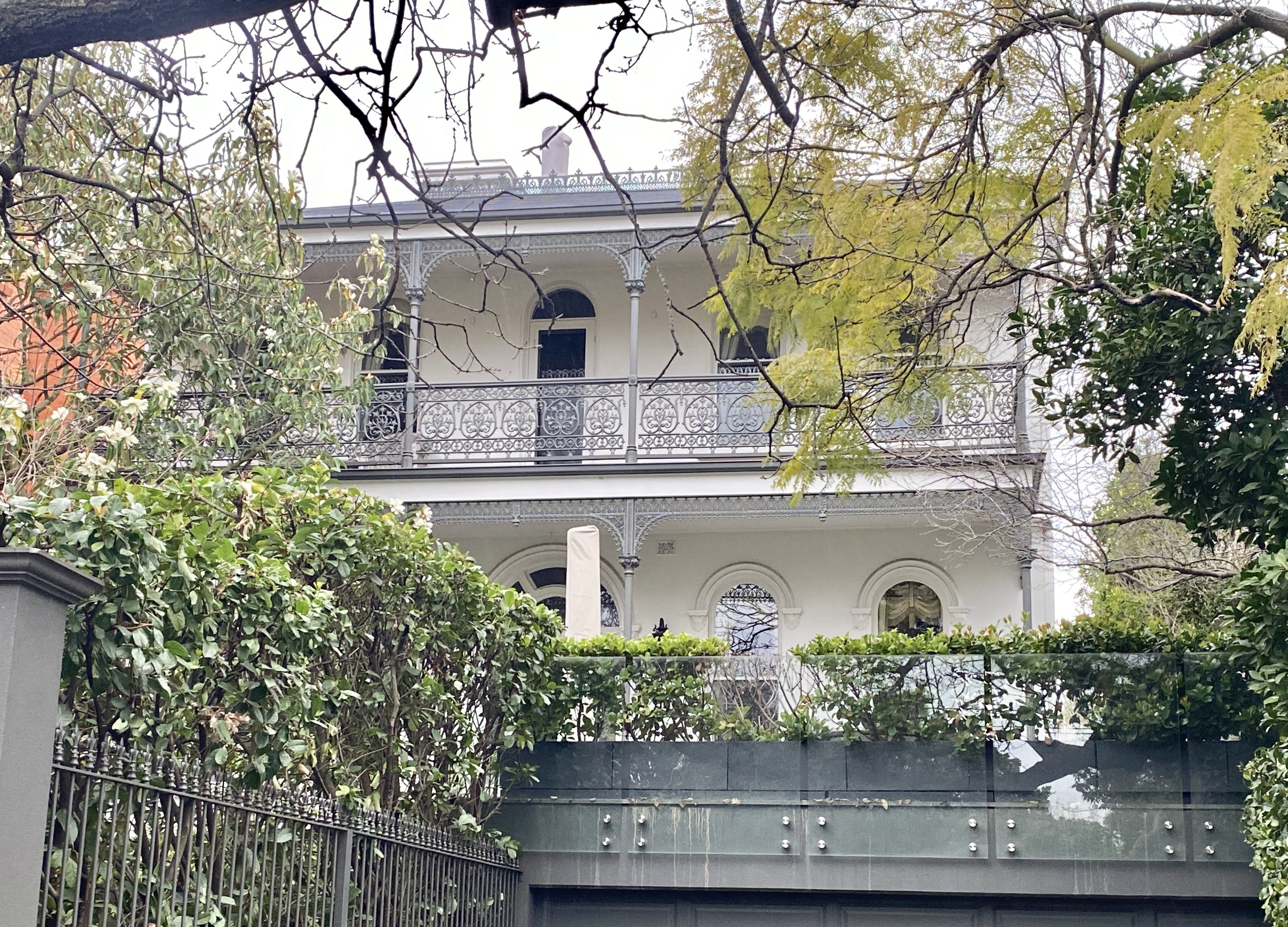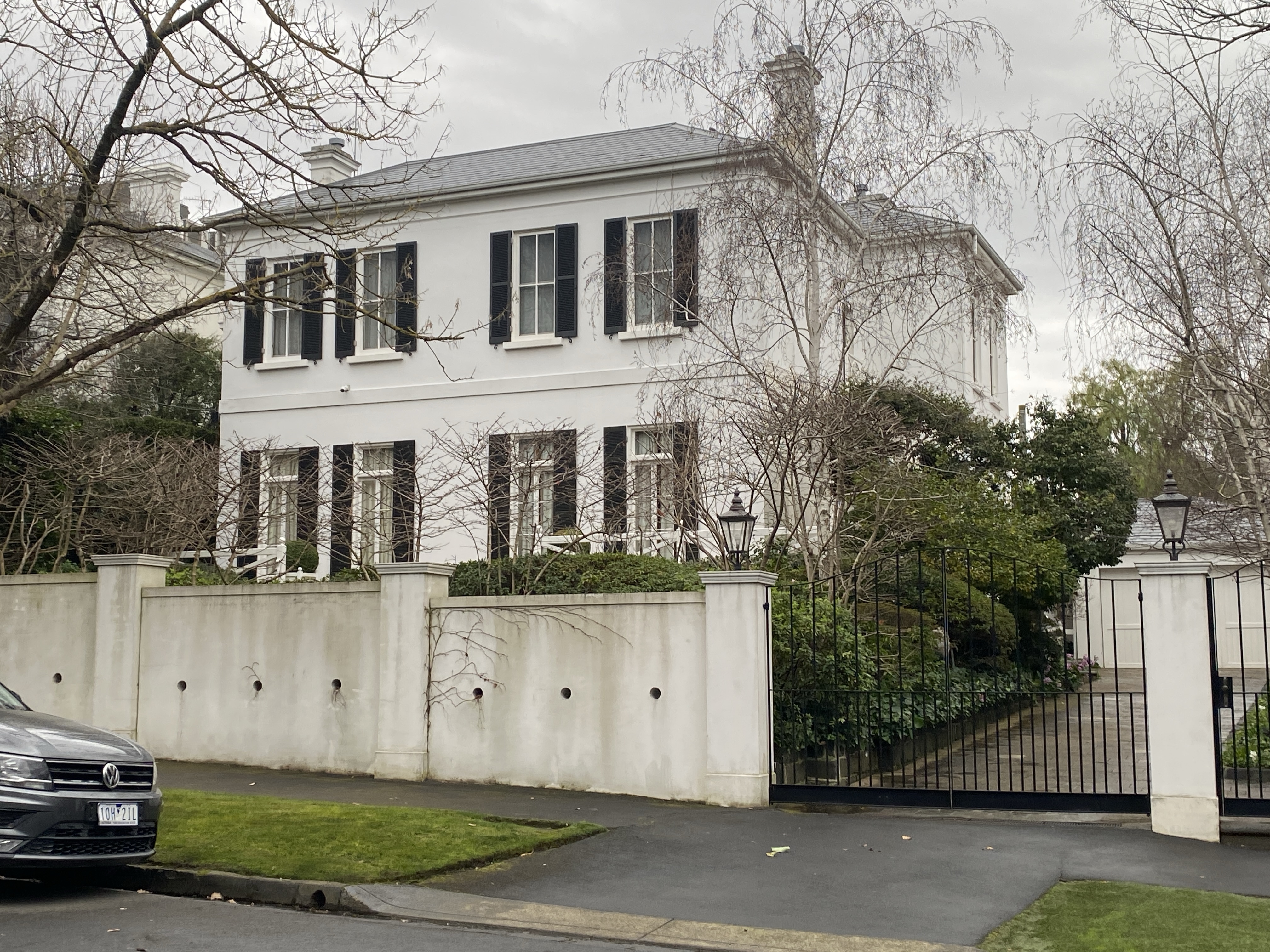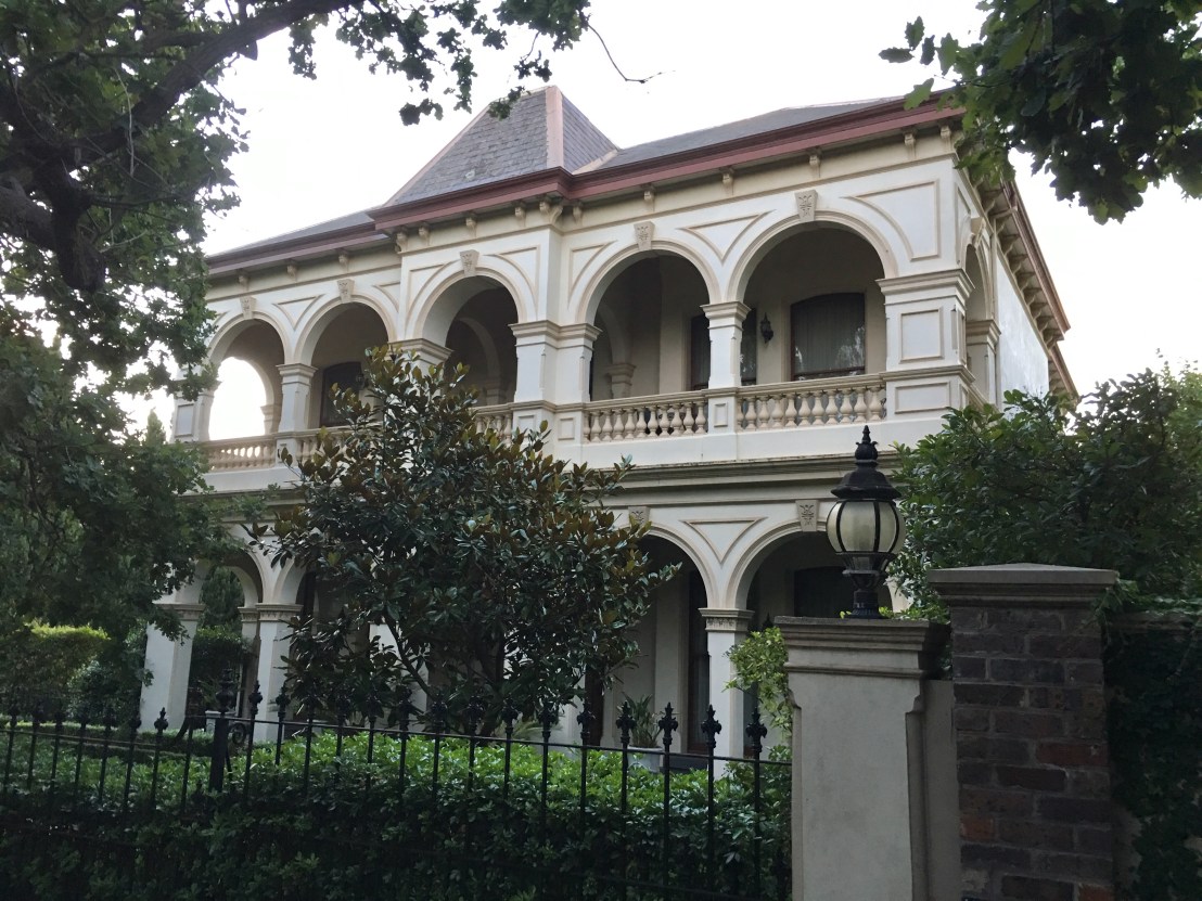 Grandview Grove in Prahran is really pretty grand ! Even in light rain a few weeks ago. It was subdivided in the early 1880s with large blocks and attracted the well off who built large houses – it’s one of the few streets that’s mainly mansions in Melbourne, like Sackville Street in Kew, and Shakespeare Grove in Hawthorn.
