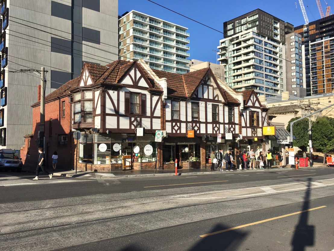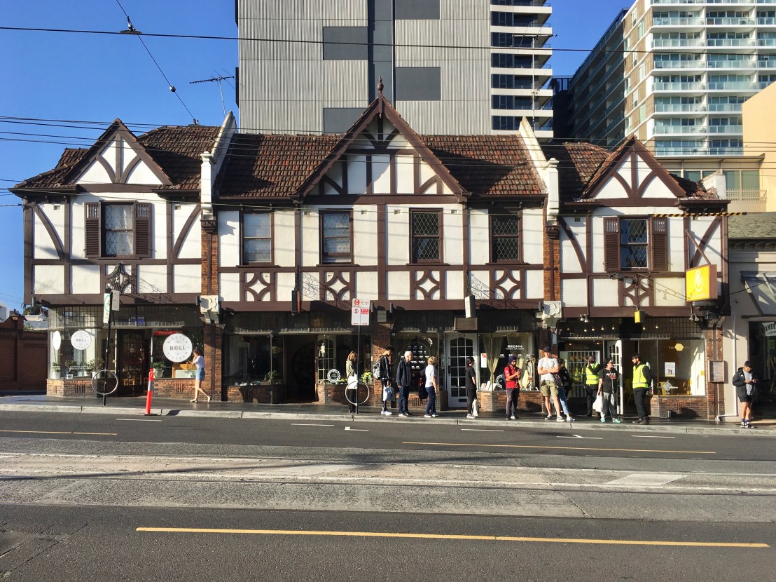 Some more #MockTudor ‘residential shops’ on #ToorakRoad, right next to #SouthYarraStation, a bit dominated by the #highrise clustering behind.