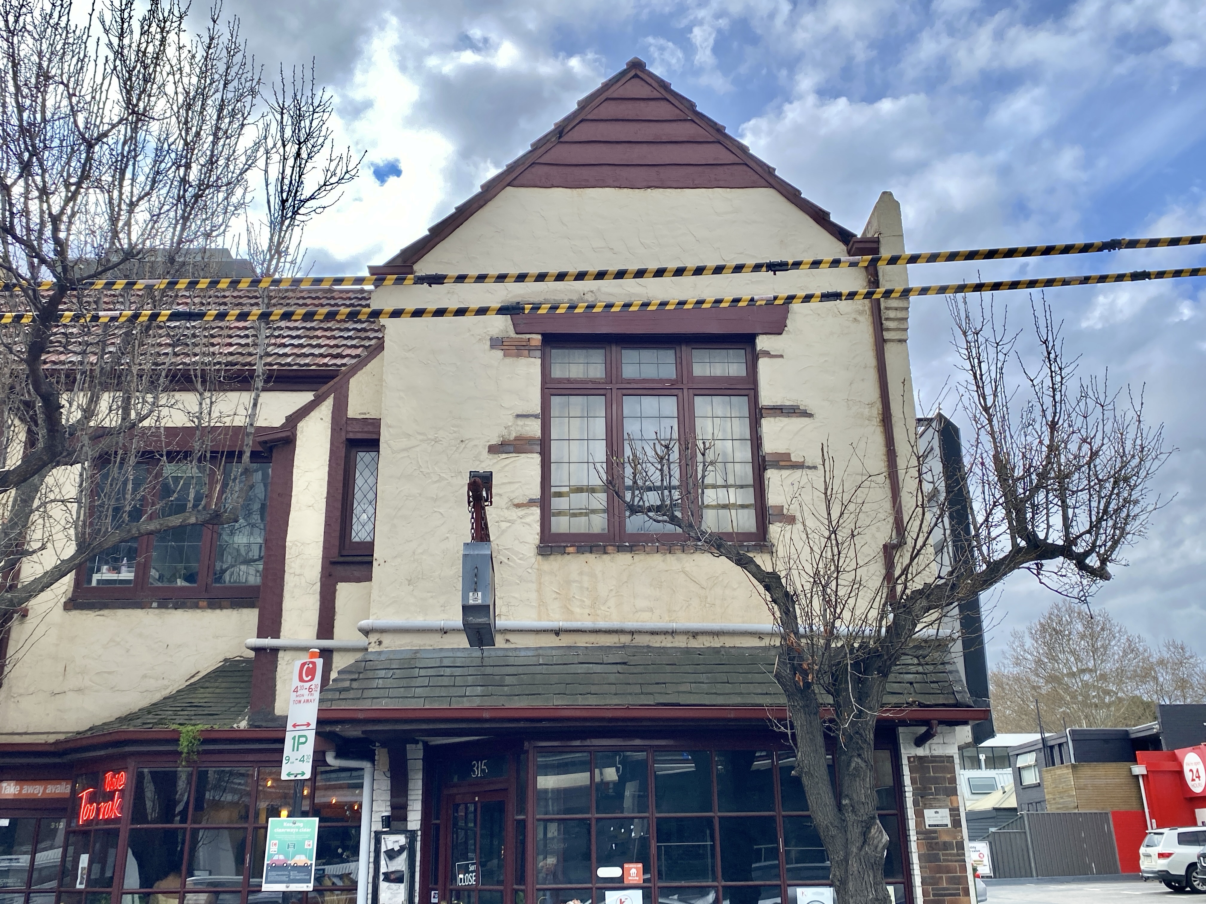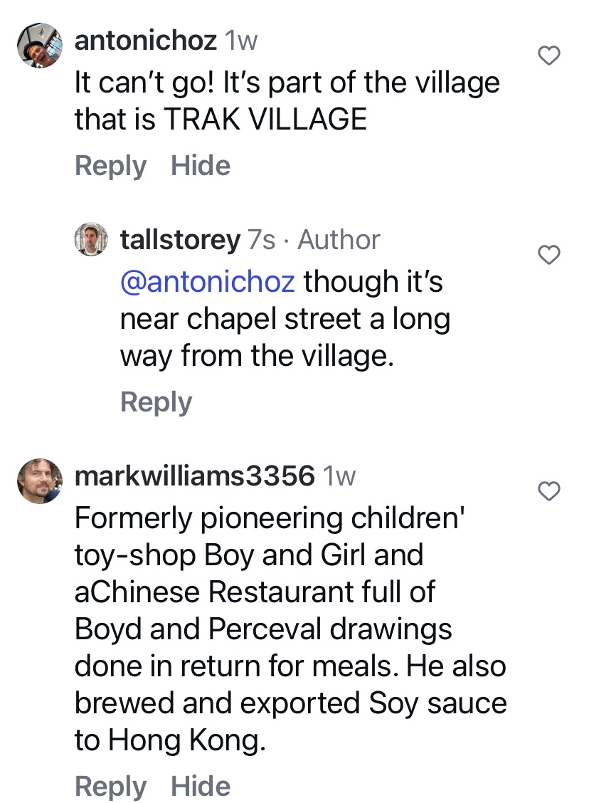 Found an article about them – built 1935, designed by Oliver Dixon, ‘in the Old English style’ – not as ornate as others but the #oldeworlde #leadlight #shopfronts are completely intact ! And oddly transparent in this light, not really holding up the first floor – which was bedrooms, with the dining and kitchen rear ground floor (no lounge ?). In Toorak Road heritage precinct, graded A2.