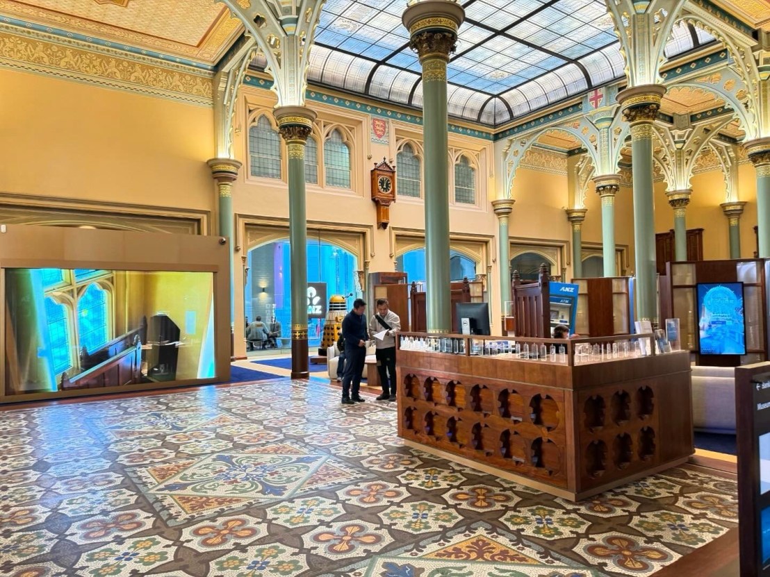Very surprised to see that the actual banking chamber of the fabulous Gothic Bank has now lost most of its 1922 polished blackwood counters, with just sections left here and there. They’ve also pulled up the carpet to reveal the tiled area of the original 1887 chamber, which was half the size of the current one – it was enlarged in 1922, replicating all the decorative details. The Age article about it quotes the architect from @foolscapstudio saying ‘it’s been restored to its former glory’, but it looks like a mess to me. They restored some of the ceiling details, but the carpet is way too bold, and cabinets for their historical collection are dotted here and there. I guess banks just don’t use counters any more. Photos borrowed from Kenneth Park on Facebook, and old ones from the internet.