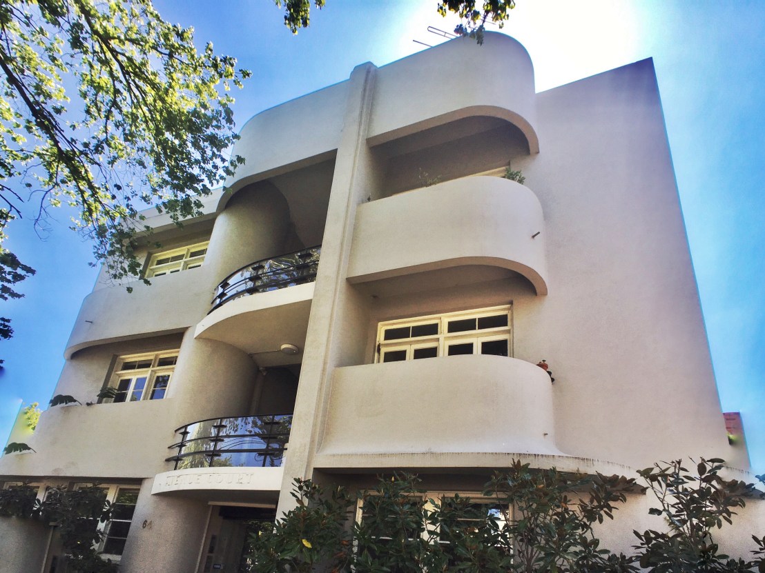The really very interesting Avenue Court by #IGAnderson, 1934. Described at the time as showing how ‘deeply the machine era is impressing itself on residential work’, I guess meaning it was new and different and modem, rather than implying stark modernism, coz this is more about plastic overlapping curved forms than square white Bauhaus.