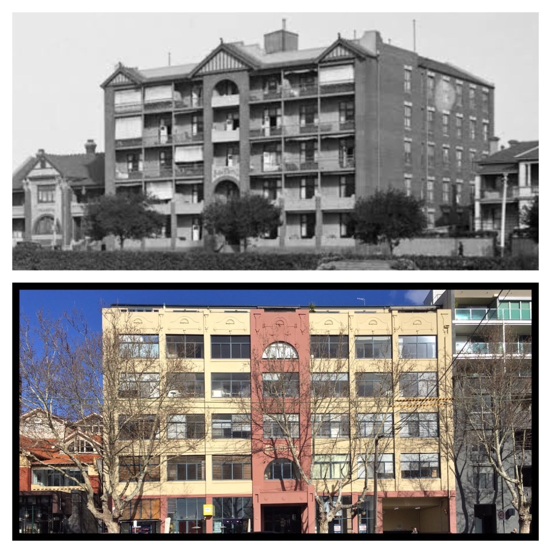 Built as #MajesticMansions in 1913, this was a very early #blockofflats, though they only had ‘appliances for simple cooking’, with a central dining room for everyone, so not exactly like modern apartments. Built and designed by builder/developer #JRDaley, right after he did the Waldorf next door, and soon after did the Regal on the other side. He also owned Broklawn further down (known as the French Embassy) as well as 78 houses in Elwood ! His son took over in the 30s and modernised the front (looks worse!). Abandoned in 1989, I went through with a friend and took the interior photos now in the files of the #NationalTrust, and reproduced in a new book on the building by David Willis. In 1983 after a big fire the rear 2/3 demolished and replaced by the low rise #MajesticApartments. Don’t know what if anything is left of the interiors.