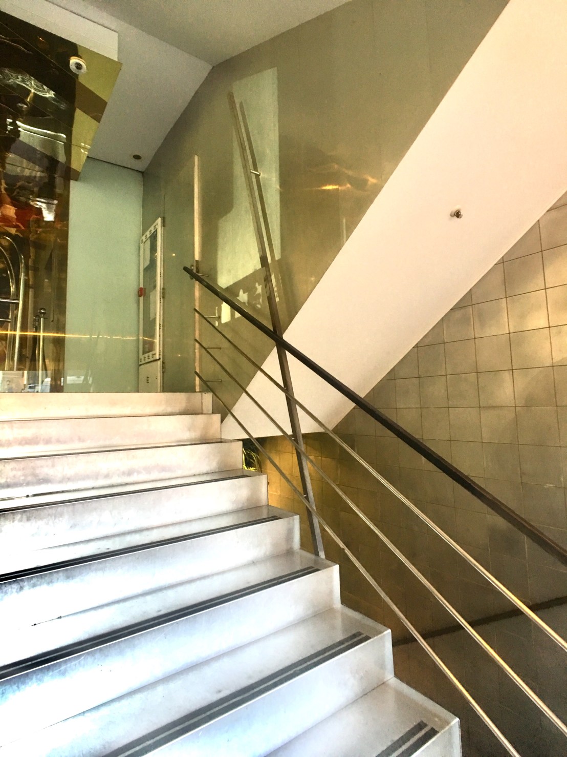 All that’s left of the #DentonCorkerMarshall interiors of the #AdelphiHotelMelbourne, a revamp of an Art Deco 1938 #FlindersLane warehouse by #JosephPlottel. DCM added the steel tiles and stair treads here, and the characteristic angular sticks. I loved their 1992 interiors, complete with angular bespoke furniture in primary colours, meant to get it heritage listed at some point, but it went bit by bit, till interiors complete overhauled in 2013.