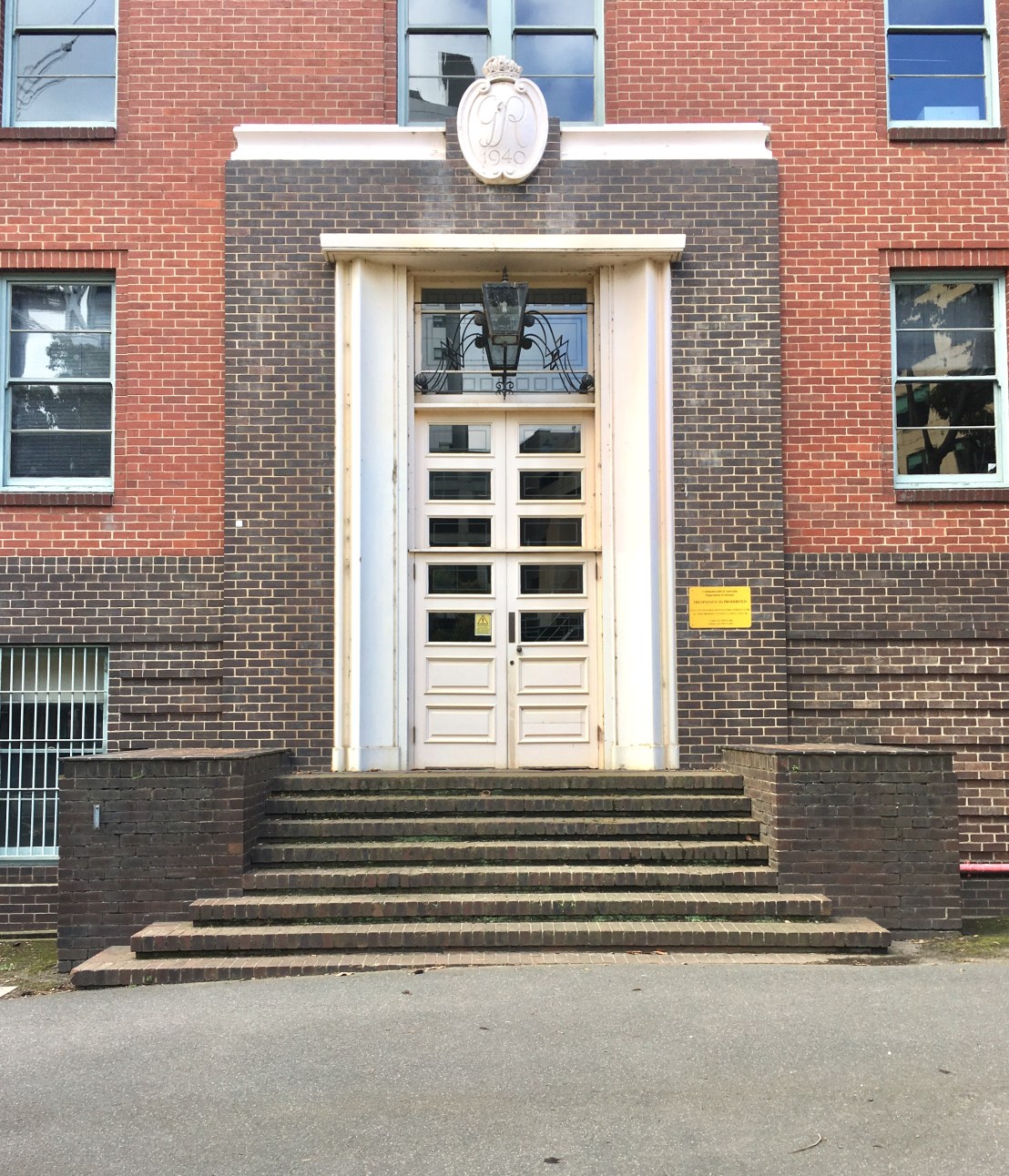 I thought this rather large plain thing on the side of #VictoriaBarracks was maybe 1950s but no it’s 1940, and I guess it’s meant to be #Georgian; the #cartouche and the #wroughtiron lamp are very nice but the rest is a bit dull. Probably by #GeorgeHallendal who did all the Army’s Deco/Classical drill halls in the late 30s, including the Repat next door. This block seems to be a huge addition to the Victorian bluestone block behind that faces the parade ground.