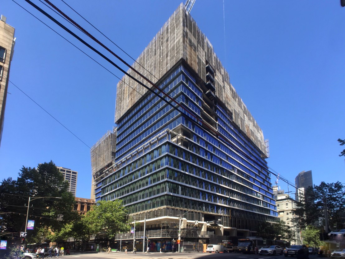 #CollinsArch is massive, not so much an arch as a lump, as I said to anyone who would listen, which was nobody. You’ll only see that it actually is an arch from pretty much directly north or south, the rest of the time it’ll be a tall glassy steppy iceberg, with sheer walls on all sides. Still makes me angry that the site, which had a huge 60s plaza, was sold off by the City of Melbourne in the 90s with no thought of preserving the open space, and still no action taken when the site was sold back in about 2010. @woodsbagot with @SHOParchitects