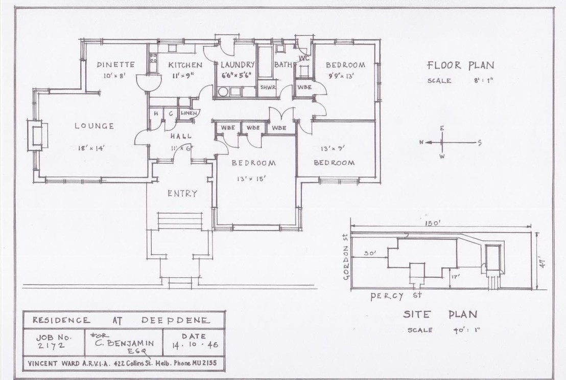 I’ve got the original blueprints, which mum also kept ! By architect Vincent Ward, of 422 Collins Street, dated Nov 1946. I’ve redrawn the plan to make it clearer. It was modest, vaguely Georgian, big garden, with a sort of grand entry stairs.