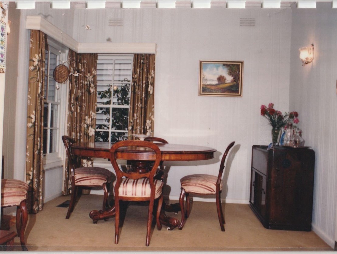 The house my grandfather built in 1946-7 on the corner of Percy and Gordon Street, #Balwyn – still there ! And much smaller than I remember. Takes up so little of the block. Pretty sure there were far more trees, it looks rather sad. Nice combo of vaguely Georgian and Modern. I remember Grandpa said having windows that went so low was a bit radical Lounge and dining to the left, main bed in the right. One bathroom. Very neat. They had great pull down stripy blinds, now there’s nothing. The woodwork was a bright 50s blue, the garage blue and white chequerboard. The high timber ‘back garden’ fence with rescued cast-iron panels he put up in the 70s still there. But no trees at all. The street used to be all small interwar brick villas or timber cal bungs, hardly any left, the one right across the street is another Tuscan/French/Georgian just built where I think my German relatives lived, their son married my mothers sister (and the mothers in law did not get along !). Many get togethers with the cousins here. My grandfather died 1977, and grandma lived here till her stroke in 1986.