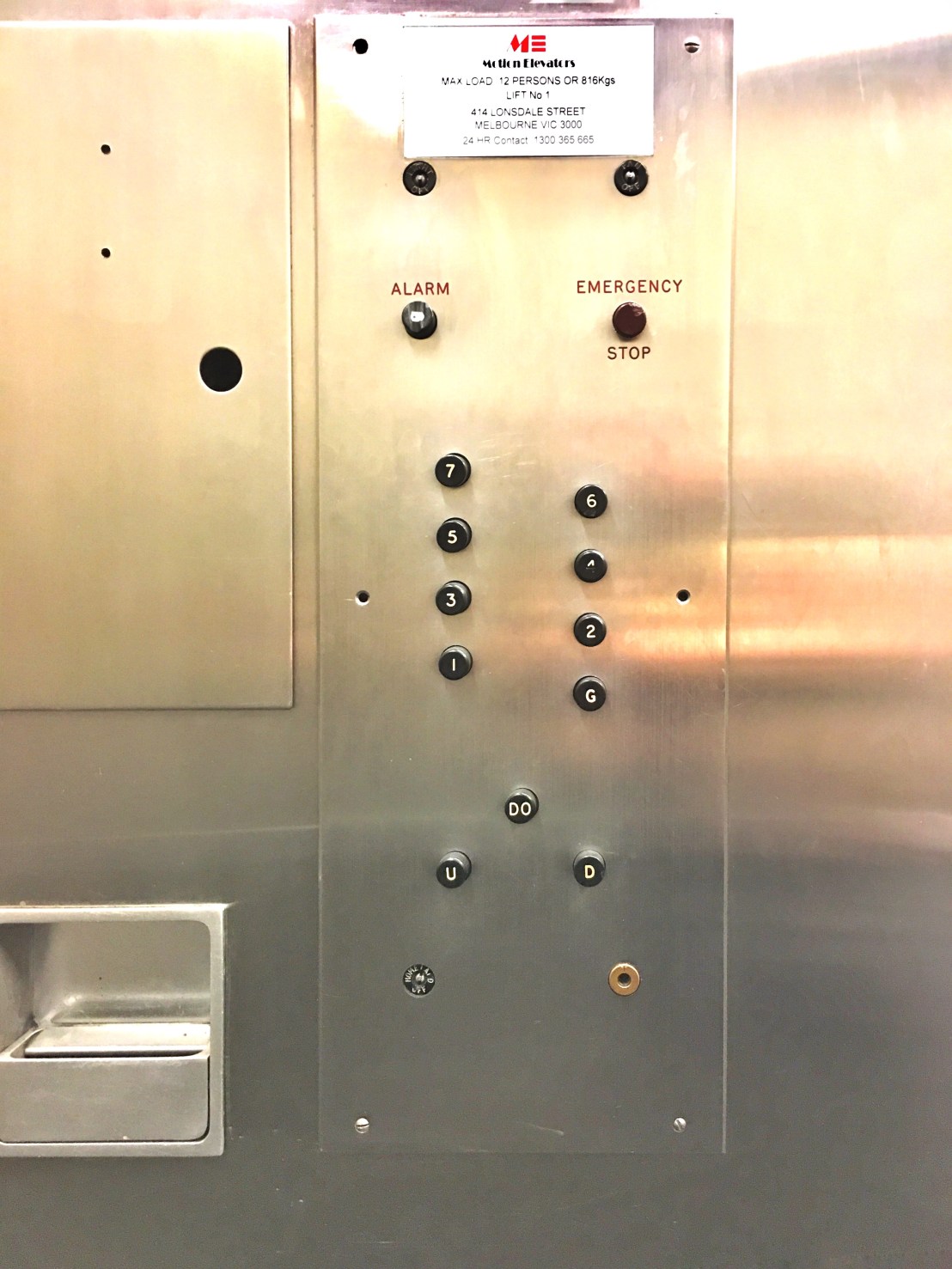 Not terrifically exciting but this lift probably dates from 1960, when the rather cute #LaurensHouse at 414 #LonsdaleStreet was extended from the 1956 four storeys to 8 (it didn’t have a lift before). I do like the fluted aluminium (or is it steel ?) sheet. Architect #HaroldBloom, possibly an #emigrearchitect, but might not be; emigre perhaps but not postwar, he was here in 1939.
