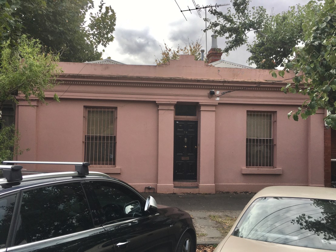 A very curious house in #RaglanStreet #SouthMelbourne, which is also a bit #wonky; perhaps 1850s #goldrush period, being built right on the street and simple classical details. Perhaps lost a bit of parapet.