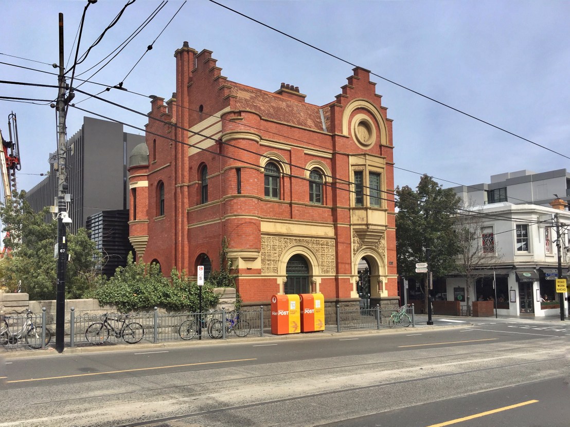 Another fave, the #SouthYarraPostOffice, possibly the best work by #AJMacDonald, the very inventive architect in the #publicworksdepartment who managed to design a bunch of POs and court houses in the early 1890s that just managed to get built before the depression stopped everything. This one finished in 1893, the year the banks nearly went bust and everybody’s real estate investments were suddenly worthless. They’re all eclectic, this one combining #RomanesqueRevival with #ScottishBaronial or is it Flemish #steppedgable with a #queenanne #orielwindow and lashings of carved ornament (or it might be #terracotta, not sure, too much paint). Definitely looks better in angled views. Not sure what that big semi circle in the gable is though. There’s a separate door to the upstairs, a #circularstair !, prob the postmaster’s residence, and another to the basement, perhaps the telegraph office, and there’s a hatch, wonder what for ??