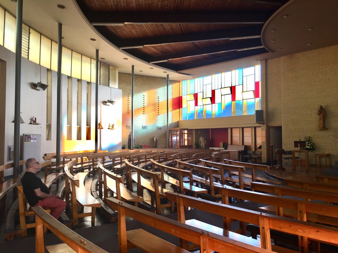 #GoodFriday is a great day to see churches – so glad I got to #StBernardsCoburg, hadn’t found any photos of the inside of this 1955 #semicircular church, and it’s great !