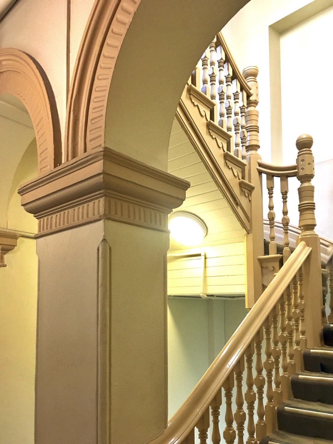 Highly improbable #staircase in the 1889 #MartinandPleasance building in #CollinsStreet, like some tight Paris tenement. So surprised the OH&S people havnt declared it unsafe. Matches the exterior come to think of it. It’s not protected because the building isn’t on the #victorianheritageregister, and it’s not really an ‘interior’ that could be protected by the planning scheme, a failing of the system………