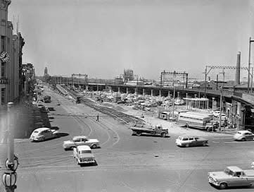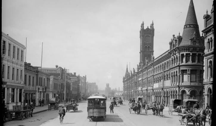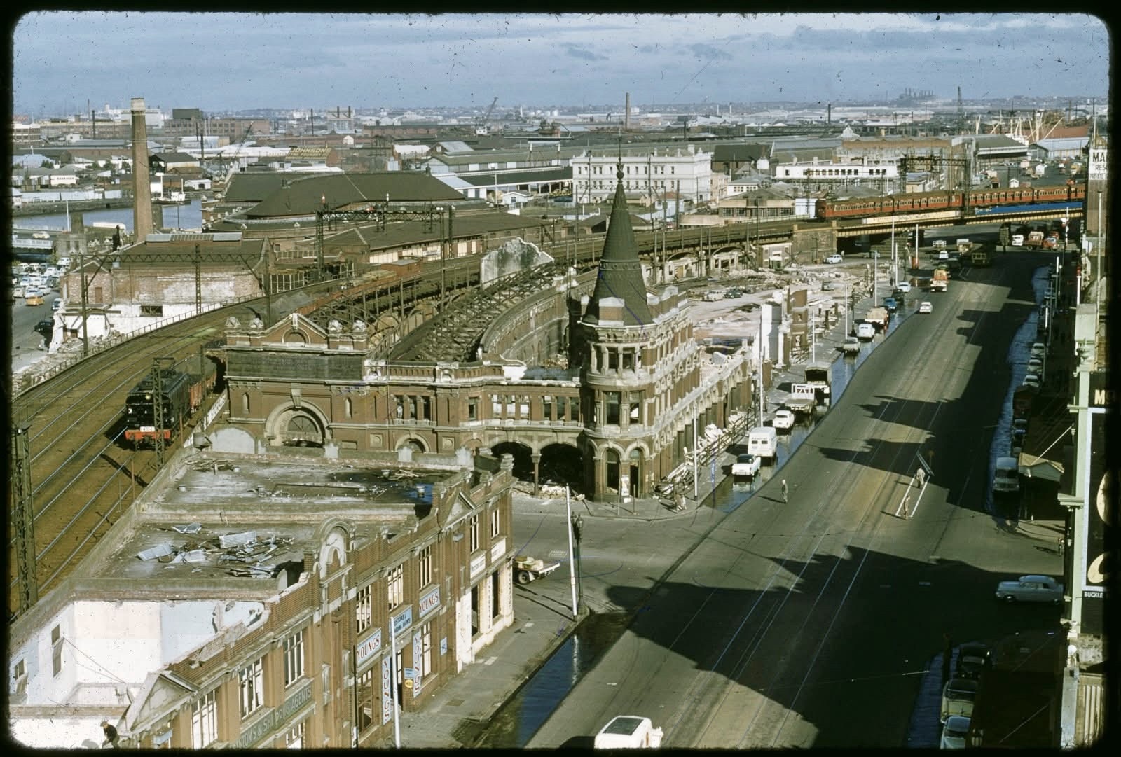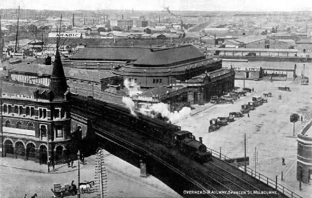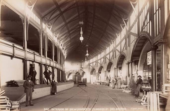 The fantastic long demolished Fish Markets once at the far end of Flinders Street; one of the great loses, but then in the 1950s there was no such thing as heritage listing, and Victoriana was actively disliked.