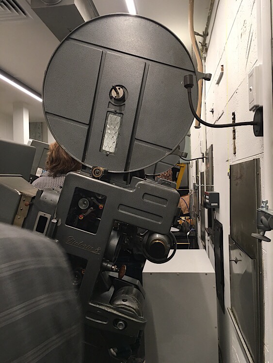 On our tour of the #CapitolTheatreMelbourne we got to see the #biobox ! And the view into the cinema, and a great staircase with #WalterBurleyGriffin 1924 angular detailing. Great stuff ! (these 1960s projectors about to be replaced, they need room for modern plat ones).