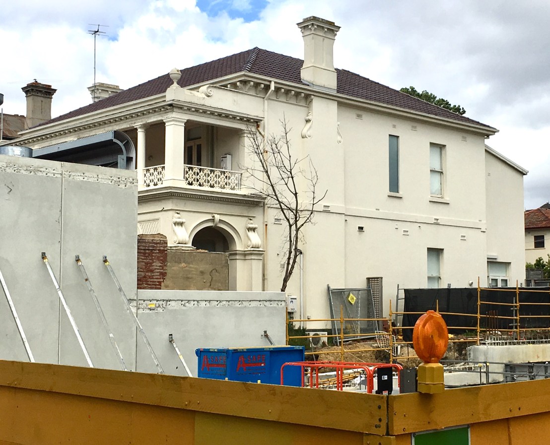 Glimpsed before this view disappears for another 50 years behind the Pride Centre. Arbedour, 83 Fitzroy Street, is one of four 1880s row-mansions behind the shops on #FitzroyStreetStKilda, which are all set back the same, and all had shops built in the front gardens from the 1910s-1930s, all still there, more or less.