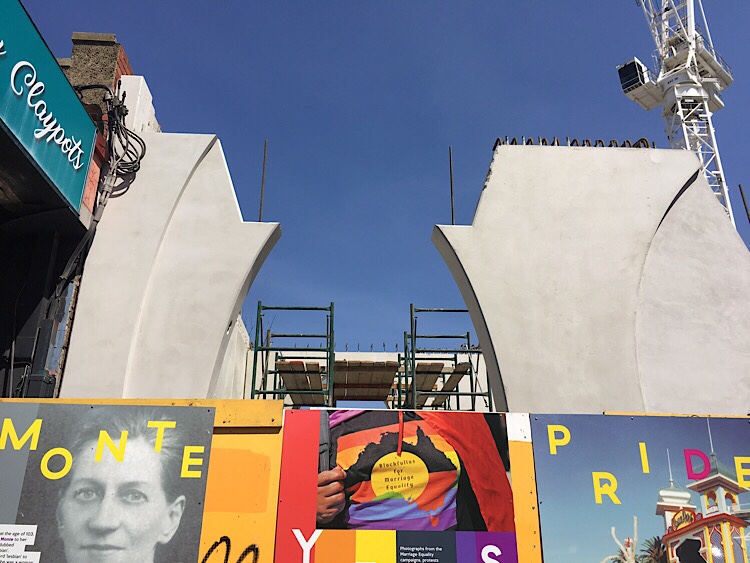 The first arches of the #VictorianPrideCentre are up ! I’m reserving opinion about the design, I like the wacky arches/tubes all piled up, and I think the interior will be magical, but I don’t think 2 storey high arches on the front of the footpath is a good idea – I think people will be surprised how big that part will be. I prefer my verandahs to be cantilevered, not extra built form, though i be ok with it if they were just lower parts. Architects @grantamonarchitects and #jamesbrearley.