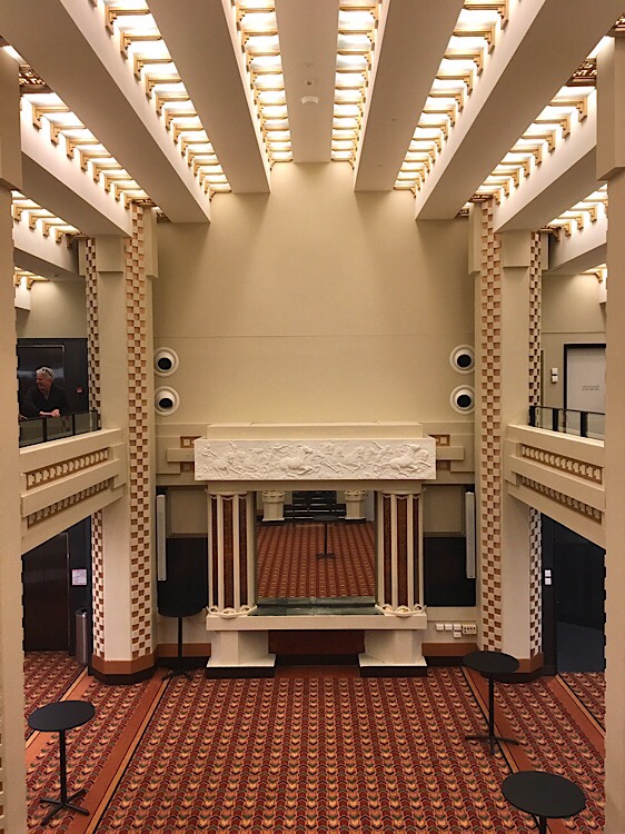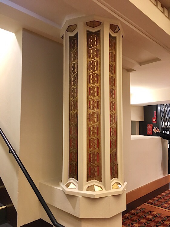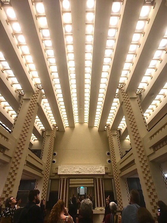 Hero shot of the #dresscircle lounge of the #CapitolTheatreMelbourne, so lucky it’s still here, or rather congrats to sue (I forget the surname) at #heritagevictoria who made sure this space was part of the cinema title when the building was #stratatitled in the 90s, and @rmituniversity for then buying it, and removing the concrete floor than divided this into two (😮) in the early 2000s, and then fully restored it over the last few years, both times employing @sixdegreesarchitects. #WalterBurleyGriffin and #MarionMahonyGriffin decided to create a fab steppy crystalline ceiling, another headache for light globe replacement, but now #LEDlights have fixed that problem. This was the lounge area only for those who paid more for the better balcony seats, but now everyone gets to see it ! Including that amazing orange and black carpet rewoven from various found fragments.