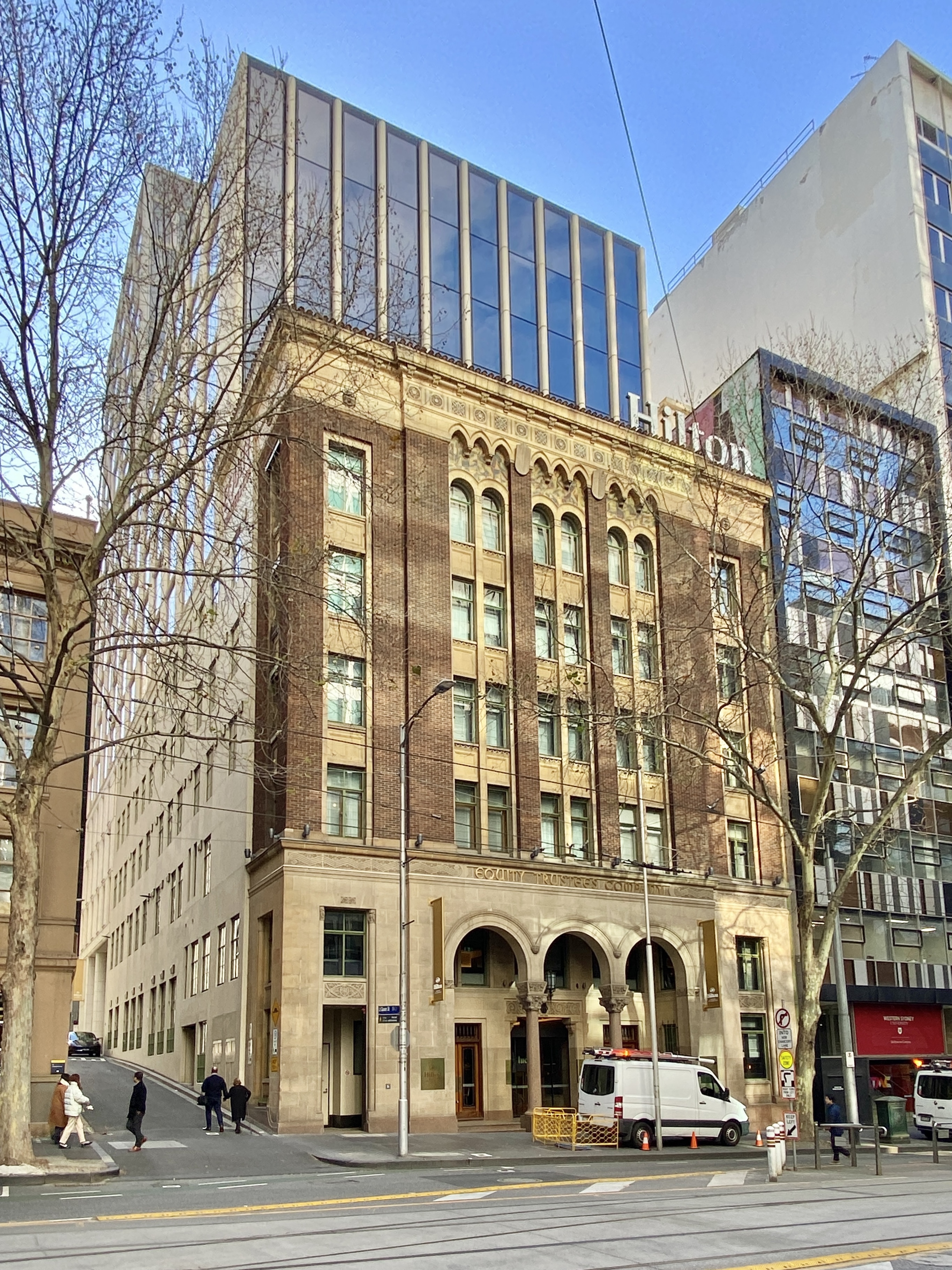 Repost 2018: The exotic 1931 #Byzantine style of #EquityTrustees (#OakleyandParkes) on #BourkeStreet near William, sitting comfortably next to the slick #Modernist #CurtainWall of the 1959 #LondonAssurance (#BernardEvans). Both more or less left alone during the 20thC, but Equity now in the process of a rear tower and conversion to hotel (keeping one set of offices intact) while the Law Institute altered the lobby and jazzed up the facade of the London Assurance in 2002, and they’ve just sold it for ‘north of $30 mill’ but it’s got an Interim #HeritageOverlay thank goodness (though I wouldn’t be surprised to hear a proposal to facade it and stick another 10 storeys up behind – it would be the first glass curtain wall to be facaded).