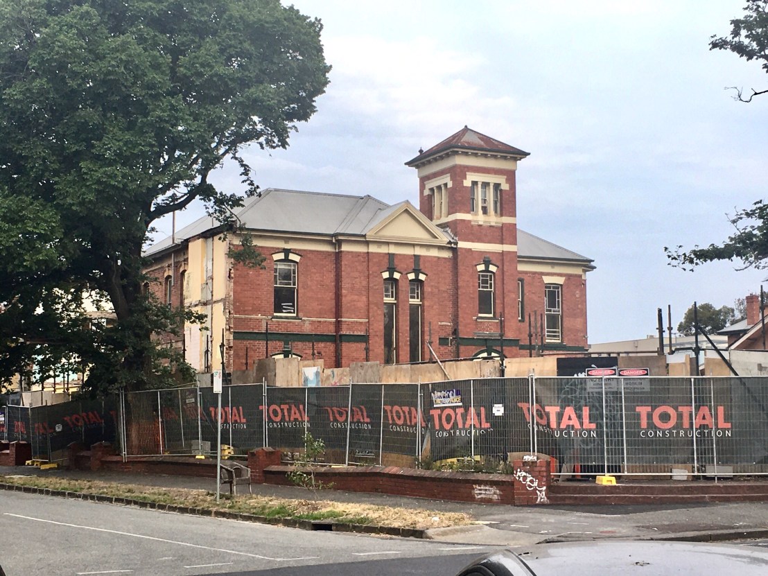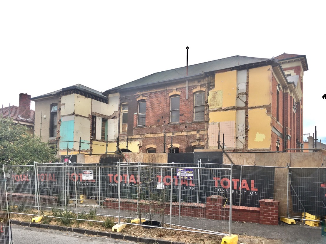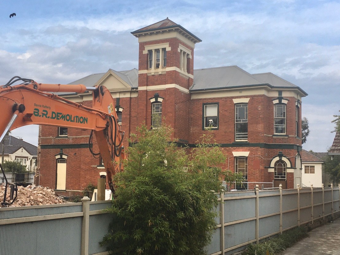 No it’s not being demolished, it’s being revealed ! They knocked down some ugly 60s flats / hotel units that were in front – though they’re going to build more back, for crisis housing apparently, which will be good to have. Anyway it’s called #Bundalohn, it’s opposite the #StKildaBotanicalGardens, it was built in 1890, designed by #HyndmanAndBates, and there’s a great stair inside, which I saw many years ago. Rather bold bit of architecture for 1890, severe plain #redbrick, though the now missing verandah / conservatory added some delight.