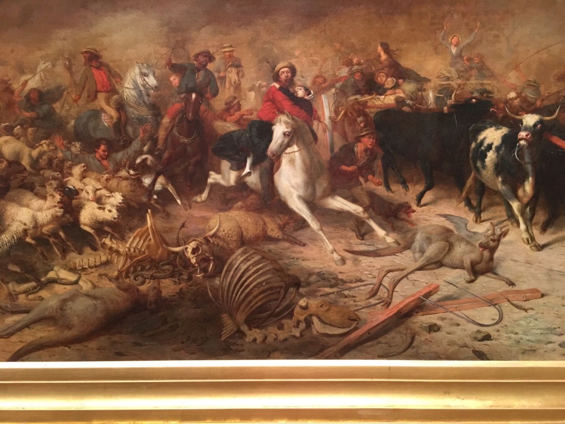 At the @library_vic just evidence of yet another bushfire, William Strutt’s huge canvas depicting Black Thursday, 6 Feb, 1851; burning an estimated 5 mill hectares, they were the worst fires until 1939, then 1983, then 2009, now 2019/20, burnt 6 mill hectares (by 8 Jan) so obviously accelerating ☹️.